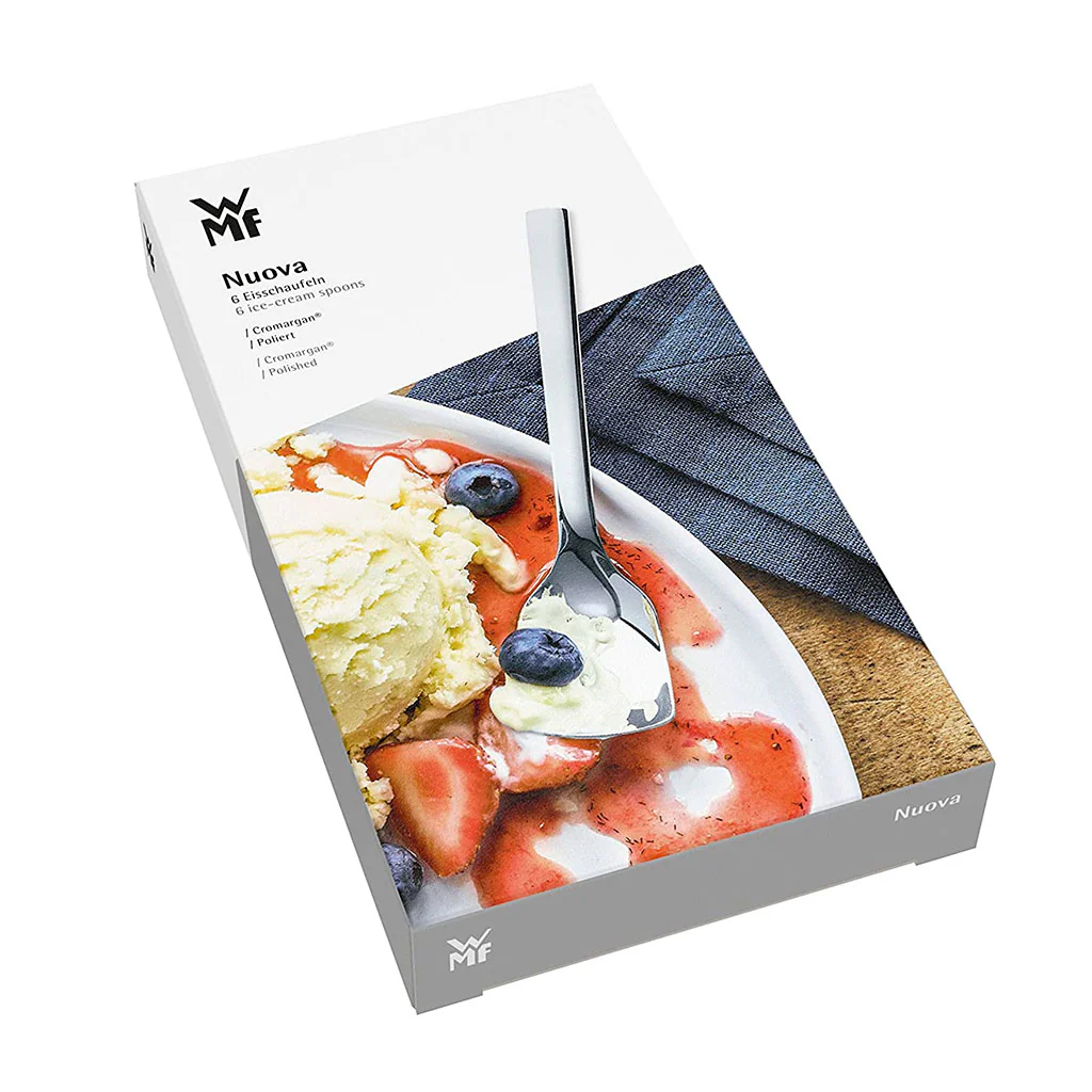 A modo de la tradicional cucharilla de helado, cada una de las piezas del Set 6 cucharas para helado Nuova de WMF te permitirá saborear cada cucharada del mejor mantecado con un cubierto diseñado especialmente para ello. Como con una pequeña pala, llegarás al fondo de la tarrina. Y es de lo más útil para rebañar los yogures, natillas y demás postres lácteos.