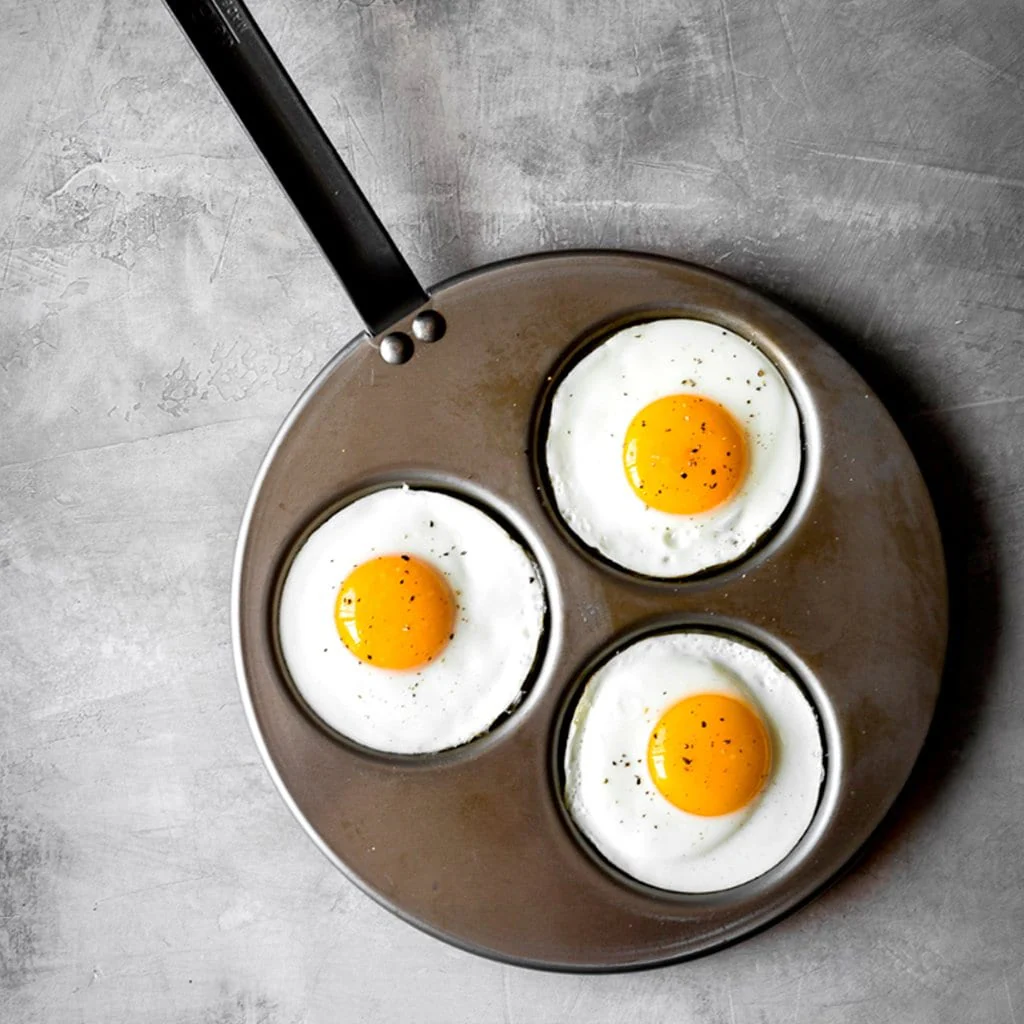 • Una sartén de hierro para preparar 3 blinis a la vez (de 10 cm cada uno) a la vez, -pan MINERAL B de acero, mango de acero. Para 3 blinis de 10 cm.