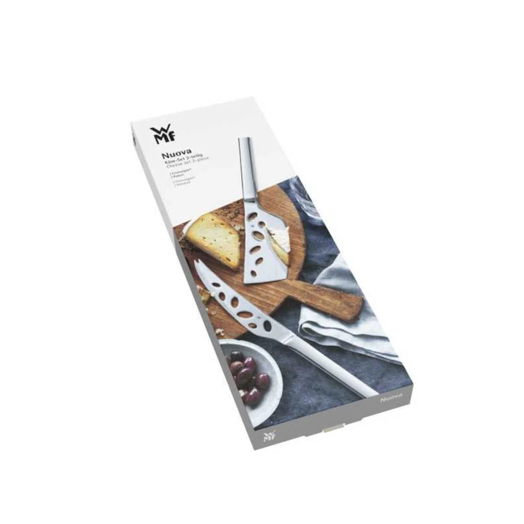 El Set de 2 cuchillos para quesos WMF es un conjunto ideal para ti, si adoras los quesos, o para regalar a alguien que sienta pasión por ellos. El set incluye dos elegantes piezas Nuova de acero inoxidable pulido Cromargan® 18/10: un cuchillo y un hacha para cortar todo tipo de quesos. Equilibrados, dimensionalmente estables, resistentes a los ácidos y prácticamente indestructibles, con ellos tendrás un conjunto para toda la vida.