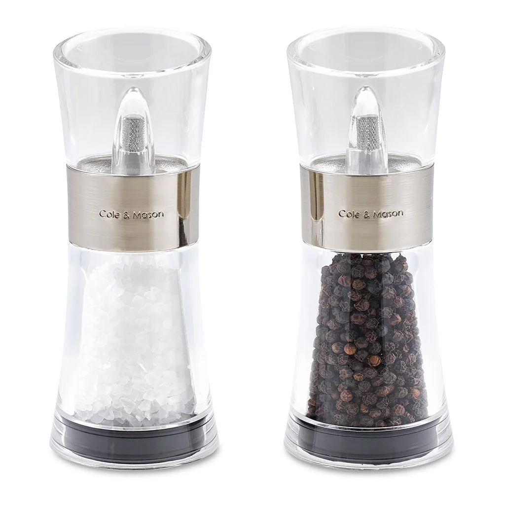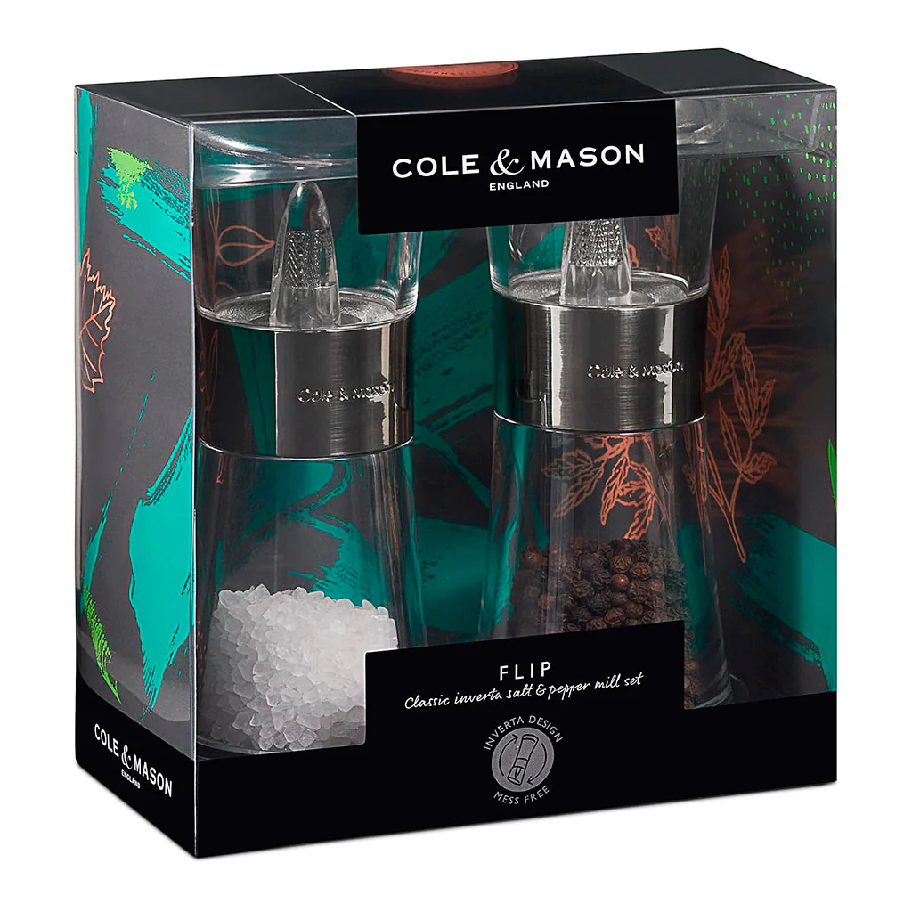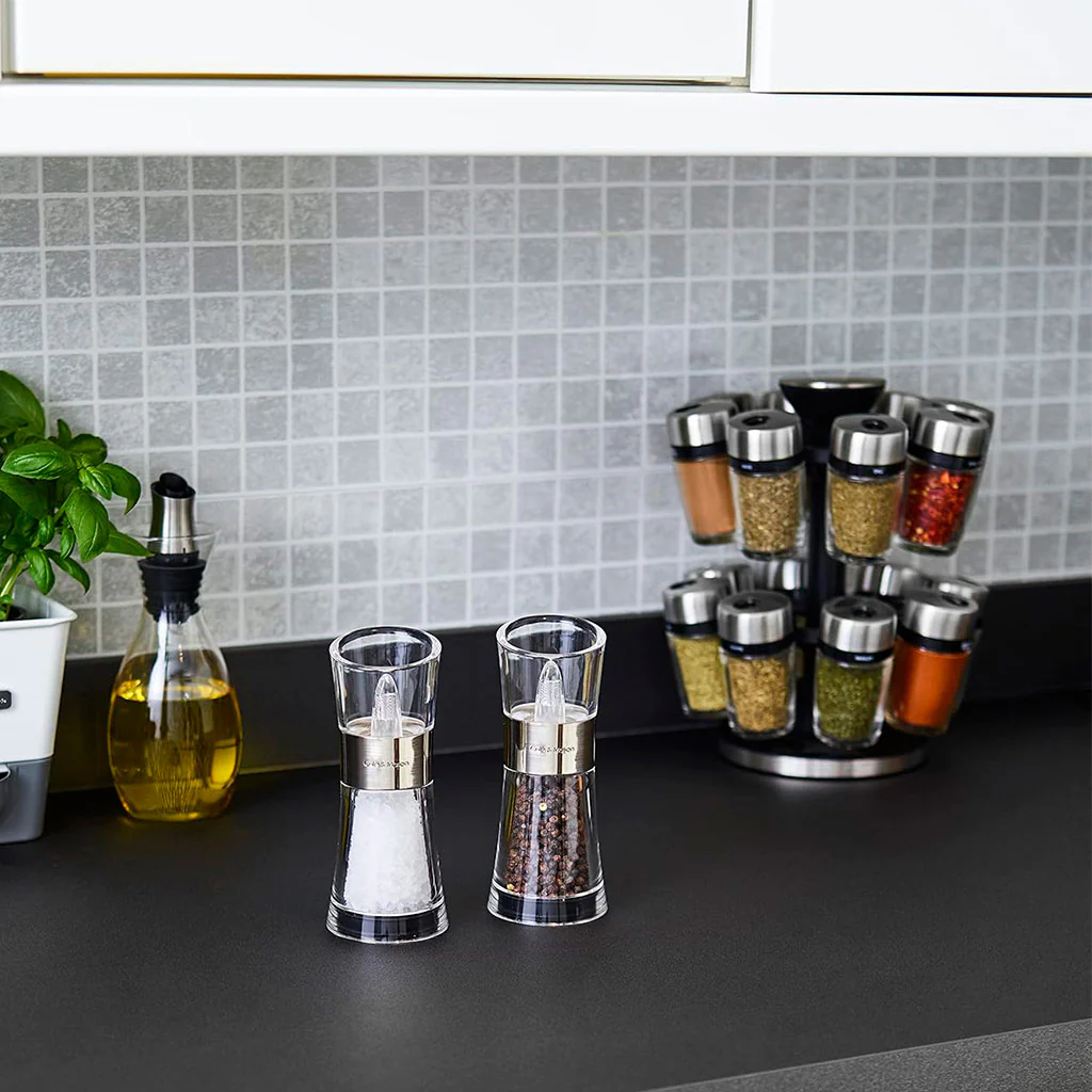El Set de molinillos de sal y pimienta Flip Inverta de Cole&Mason es la opción ideal para mantener la sal y la pimienta organizadas y a mano en la cocina. Perfectos para los amantes del orden, estos molinillos no solo son prácticos, sino también muy estéticos.