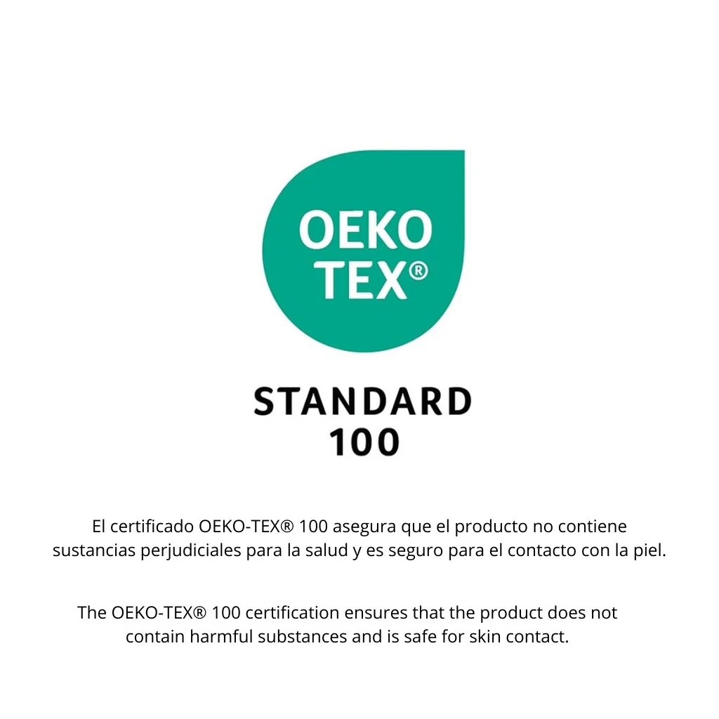 - El certificado OEKO-TEX® asegura que el producto no contiene sustancias perjudiciales para la salud y es seguro para el contacto con la piel.