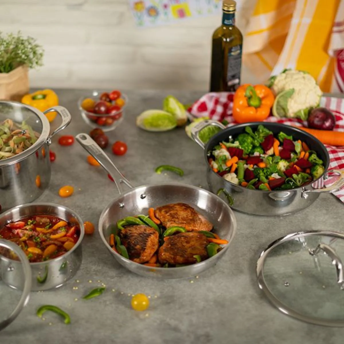 - Set de 2 sartenes de acero inoxidable.