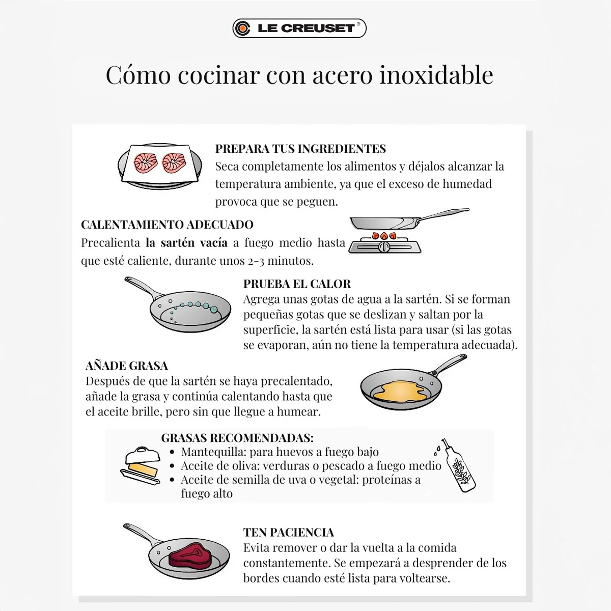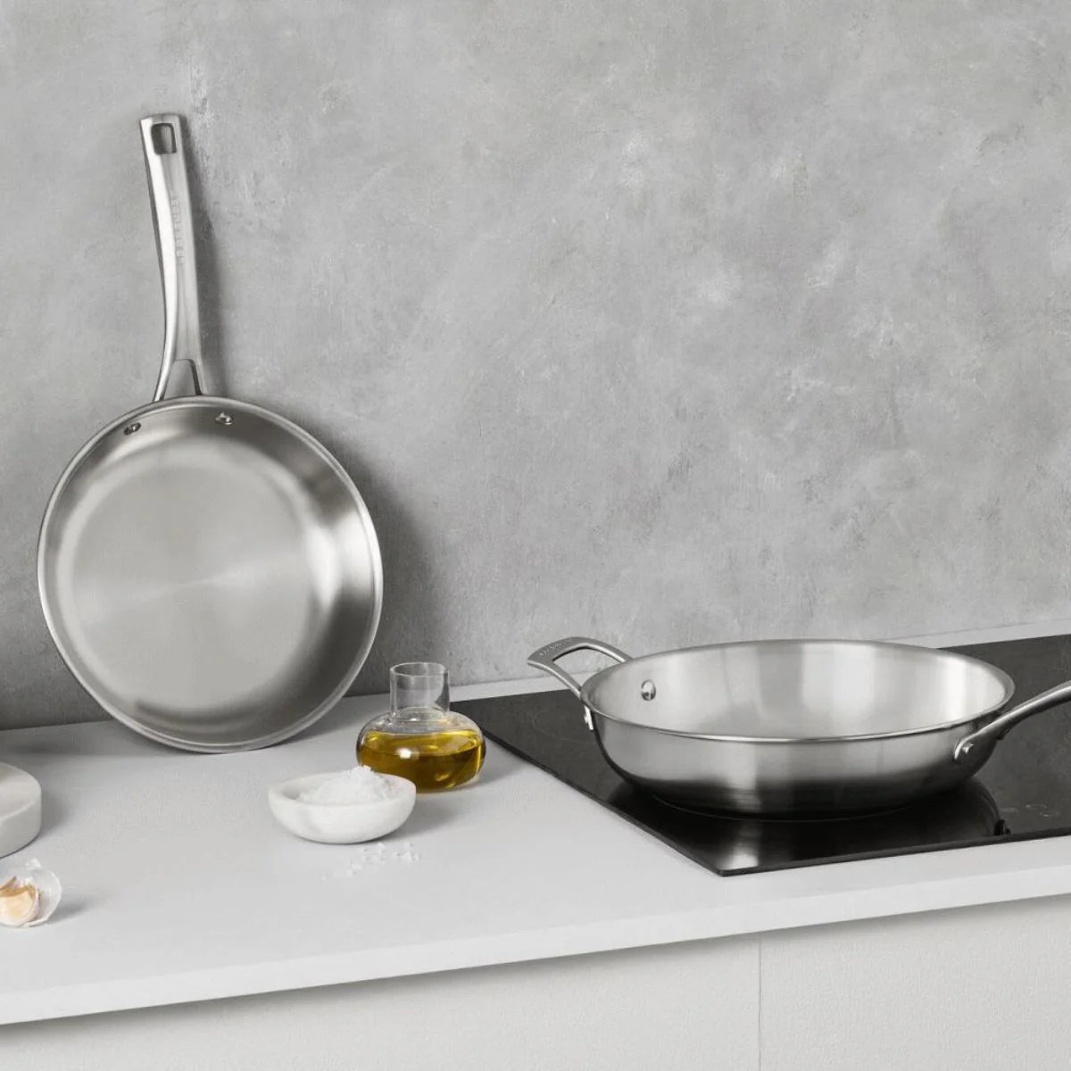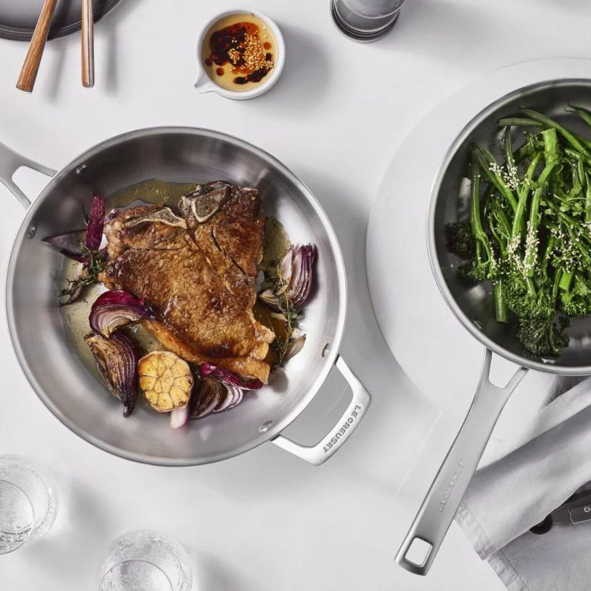 Por qué nos gusta el Set de 2 sartenes de acero inoxidable Tricapa 3-PLY Le Creuset