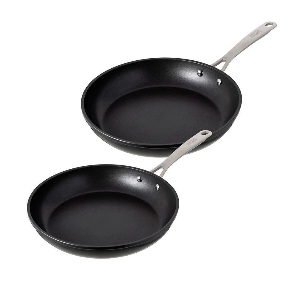 - Set de dos sartenes de aluminio forjado con revestimiento antiadherente.