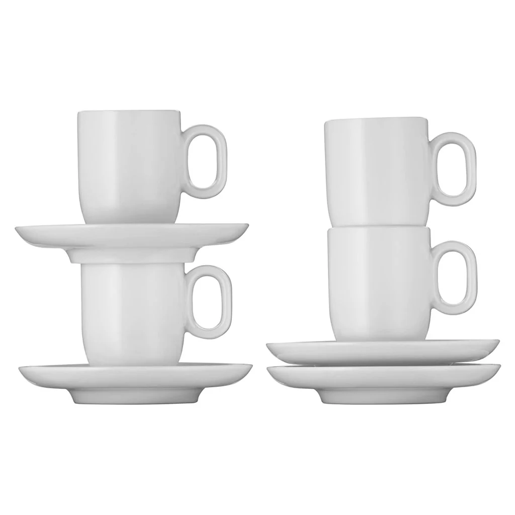 Estos packs o conjuntos vienen en un diseño blanco, atemporal y de líneas limpias. ¡Son un verdadero clásico que encaja a la perfección en cualquier mesa o cocina!, aportando un toque de sobriedad y sofisticación a tus momentos de café.