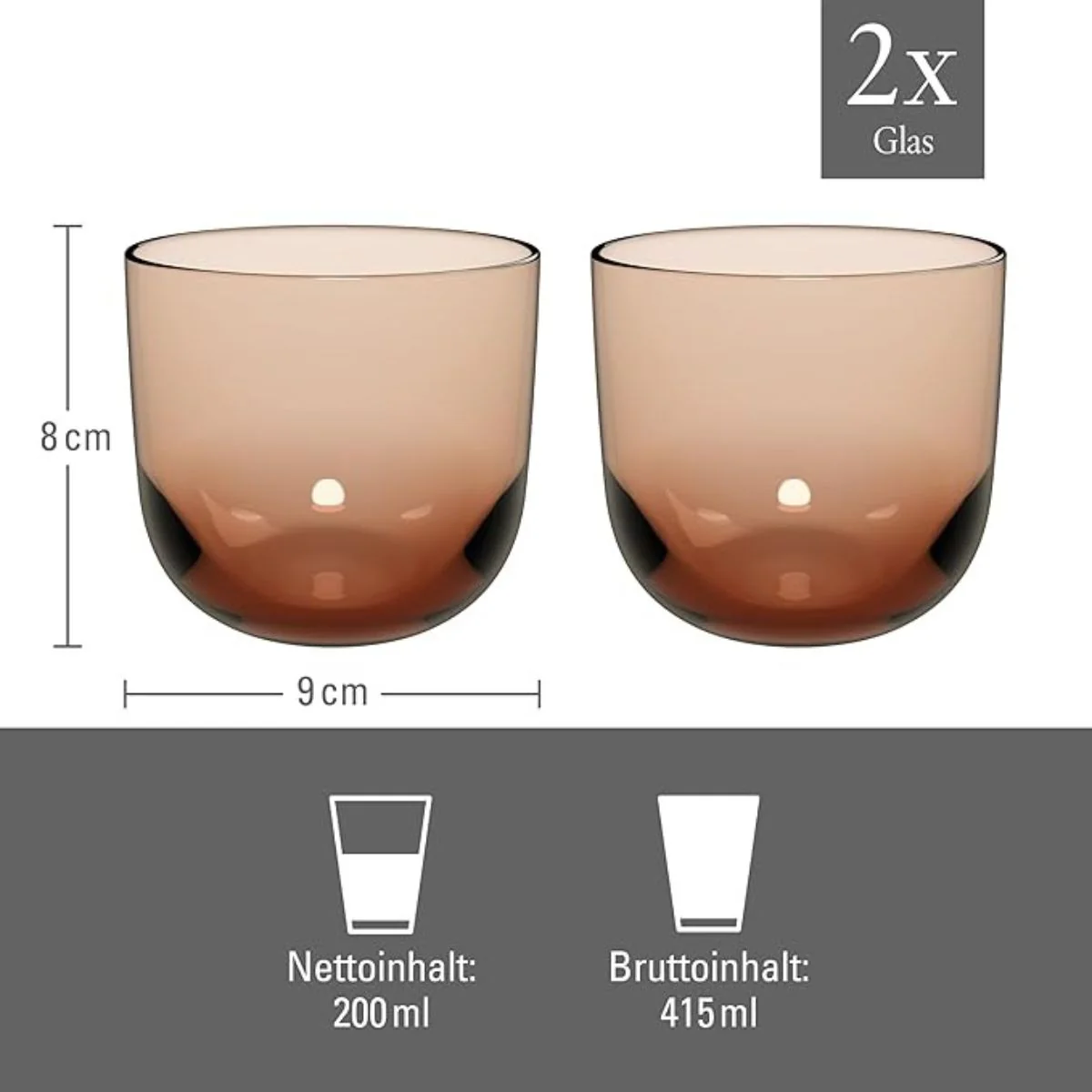 El Set de 2 vasos de cristal Like Glass Villeroy & Boch es un conjunto de dos elegantes vasos de cristal de estética contemporánea y elegante. Perfectos para el día a día, destacan por su diseño minimalista y sus líneas limpias. La delicada coloración marrón les confiere un aire cálido, que aporta sofisticación a cualquier mesa, incluso las más formales. Un set ideal para completar tu cristalería o para regalar.