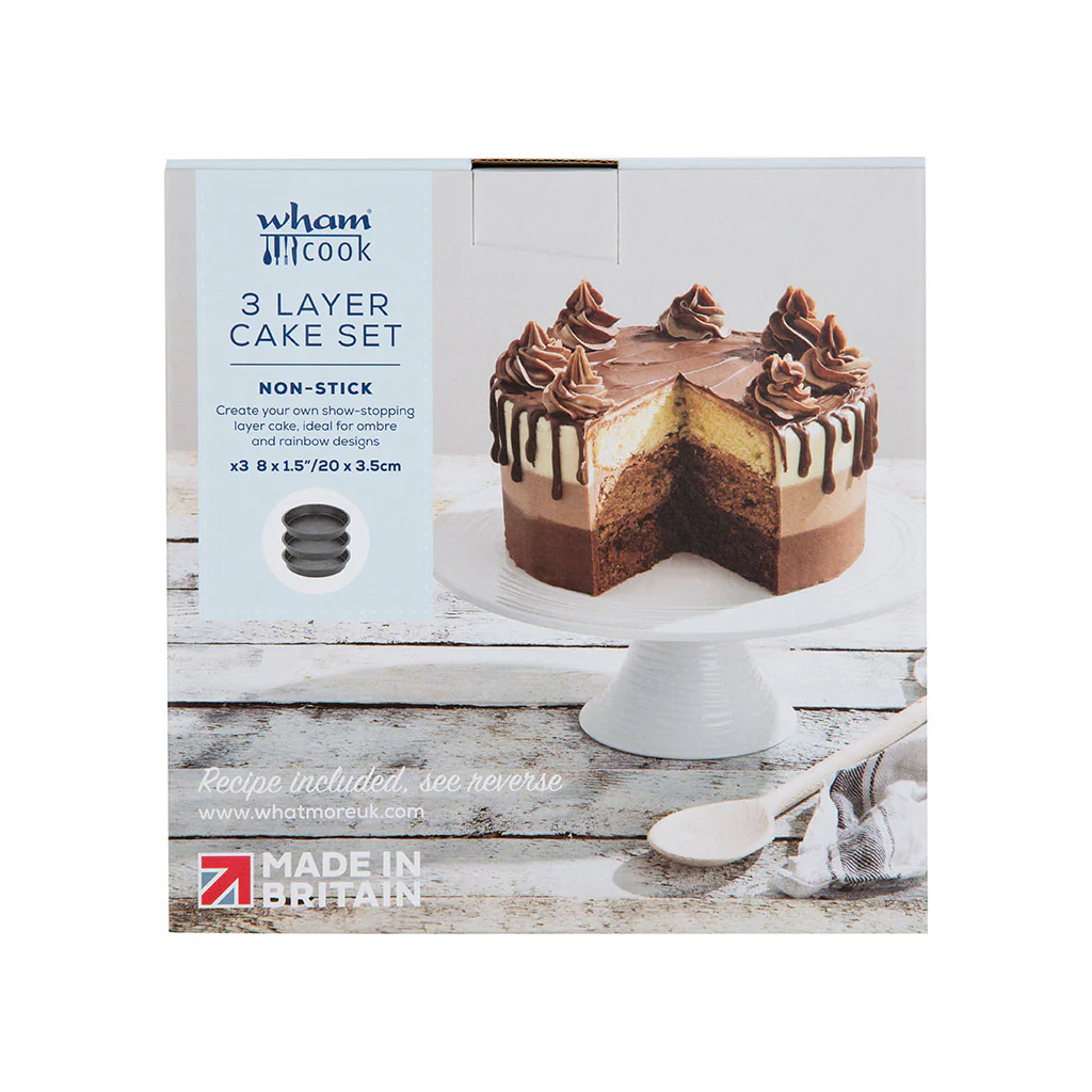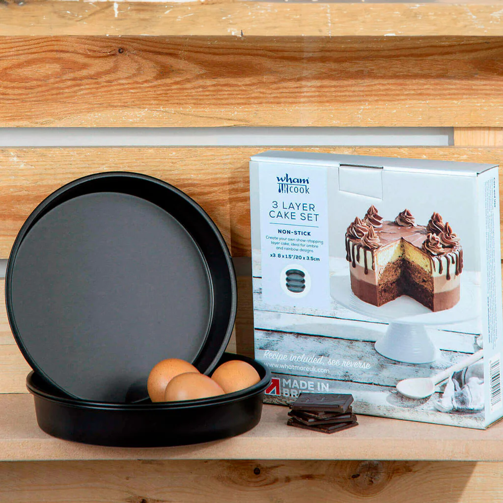 Descubre lo fácil que puede ser hornear con el Set de 3 moldes para tartas de 20 cm Wham® Cook. Este set de moldes redondos está diseñado para crear pasteles de varias capas perfectos (¡o usarlos individualmente siempre que quieras hornear bizcochos!. ¡Tus tartas saldrán preciosas y deliciosas!
