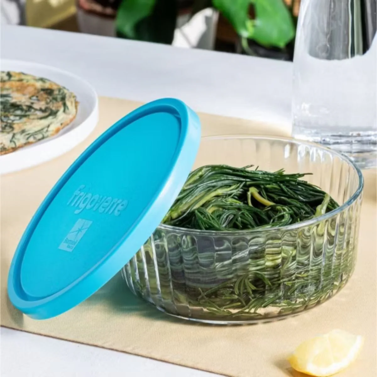 Los recipientes Frigoverre se fabrican en Italia, con vidrio de gran calidad, brillo y resistencia. Su forma redonda los hace muy prácticos y fáciles de limpiar, y su elegante relieve interior de líneas realza el brillo del vidrio y ayuda a disimular el paso del tiempo, manteniendo siempre un aspecto impecable.