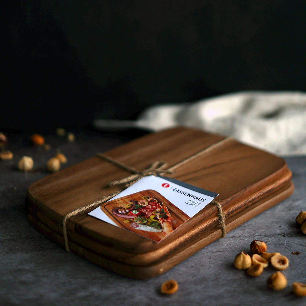 El Set de 3 tablas de madera de acacia de Zassenhaus es un conjunto de 3 tablas, perfectas para presentar quesos, embutidos o ahumados en tus cenas informales. Y son unos platos para servir los bocadillos de la merienda de lo más originales.