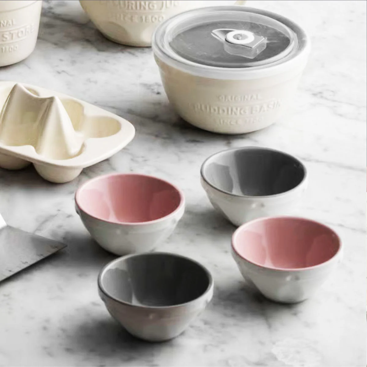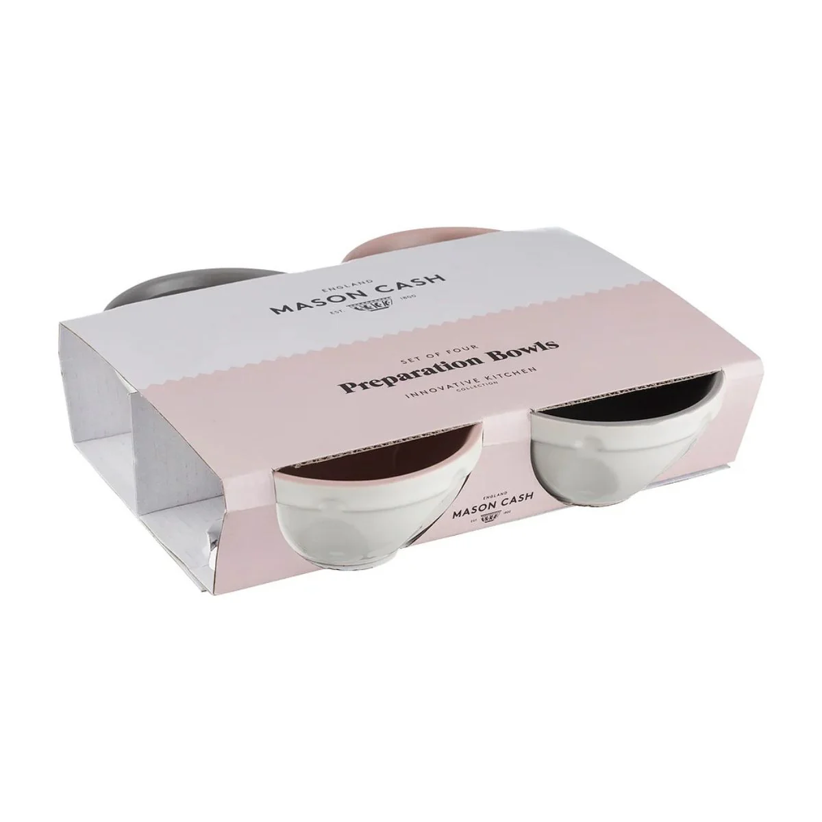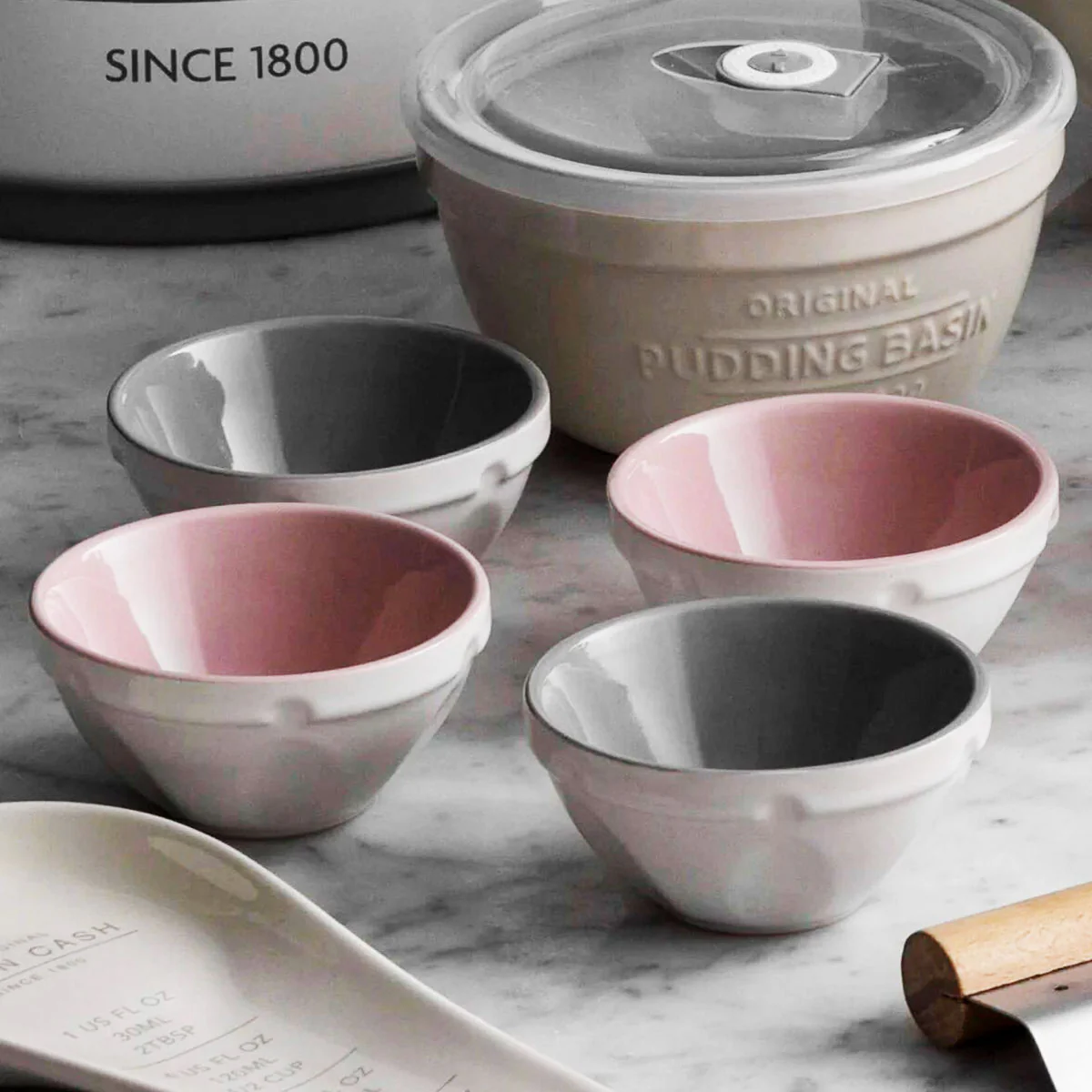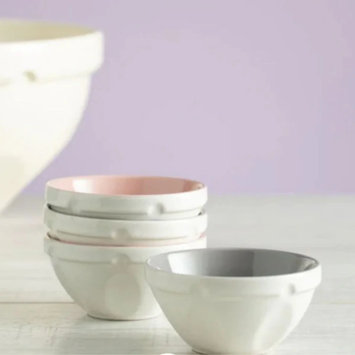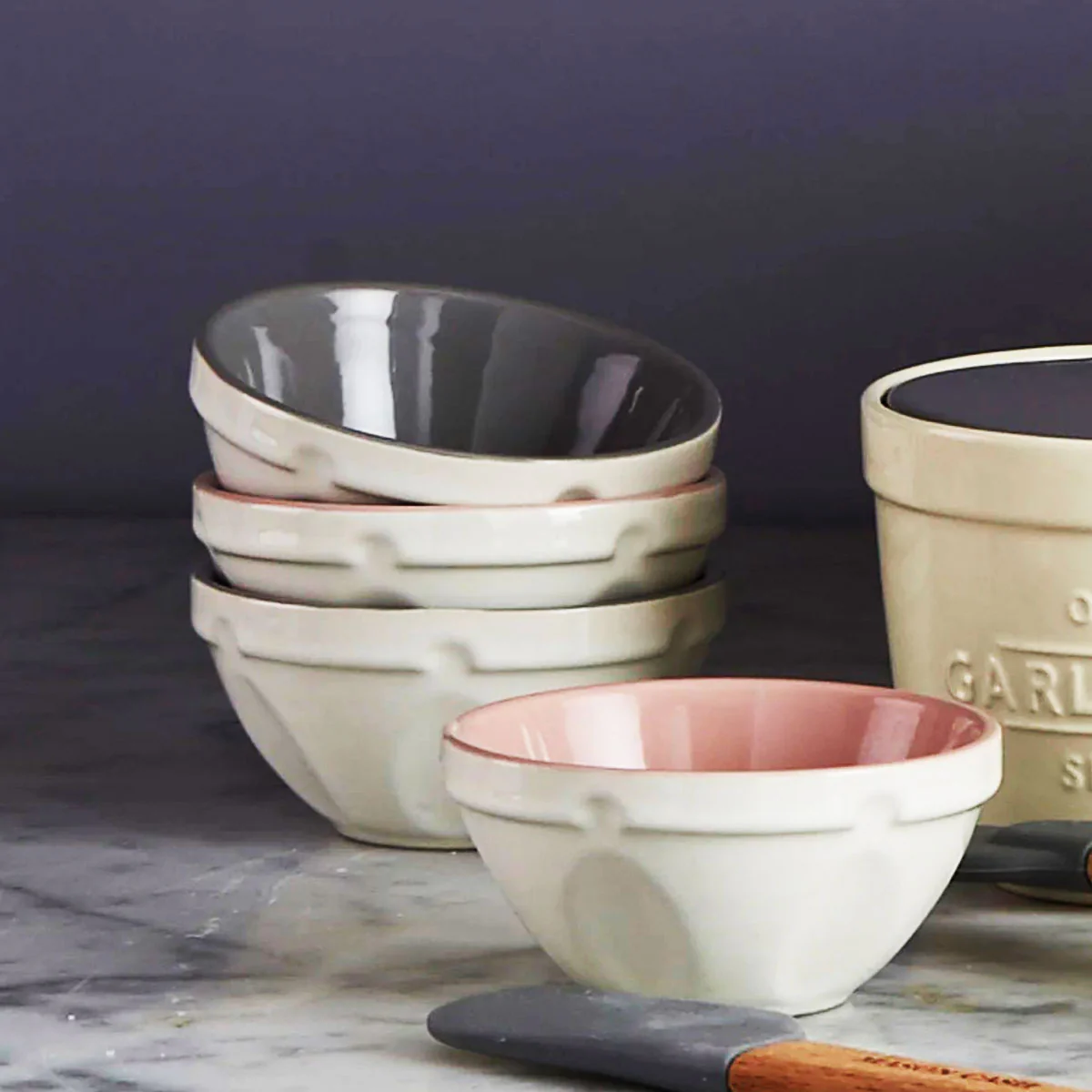 Hazte ya con este set de 4 boles de cerámica Mason Cash y enseguida se convertirá en uno de los imprescindibles de tu día a día en la cocina. Sus colores crema, rosa pastel y gris clarito ¡son casi tan irresistibles como los deliciosos postres que prepararás con ellos!