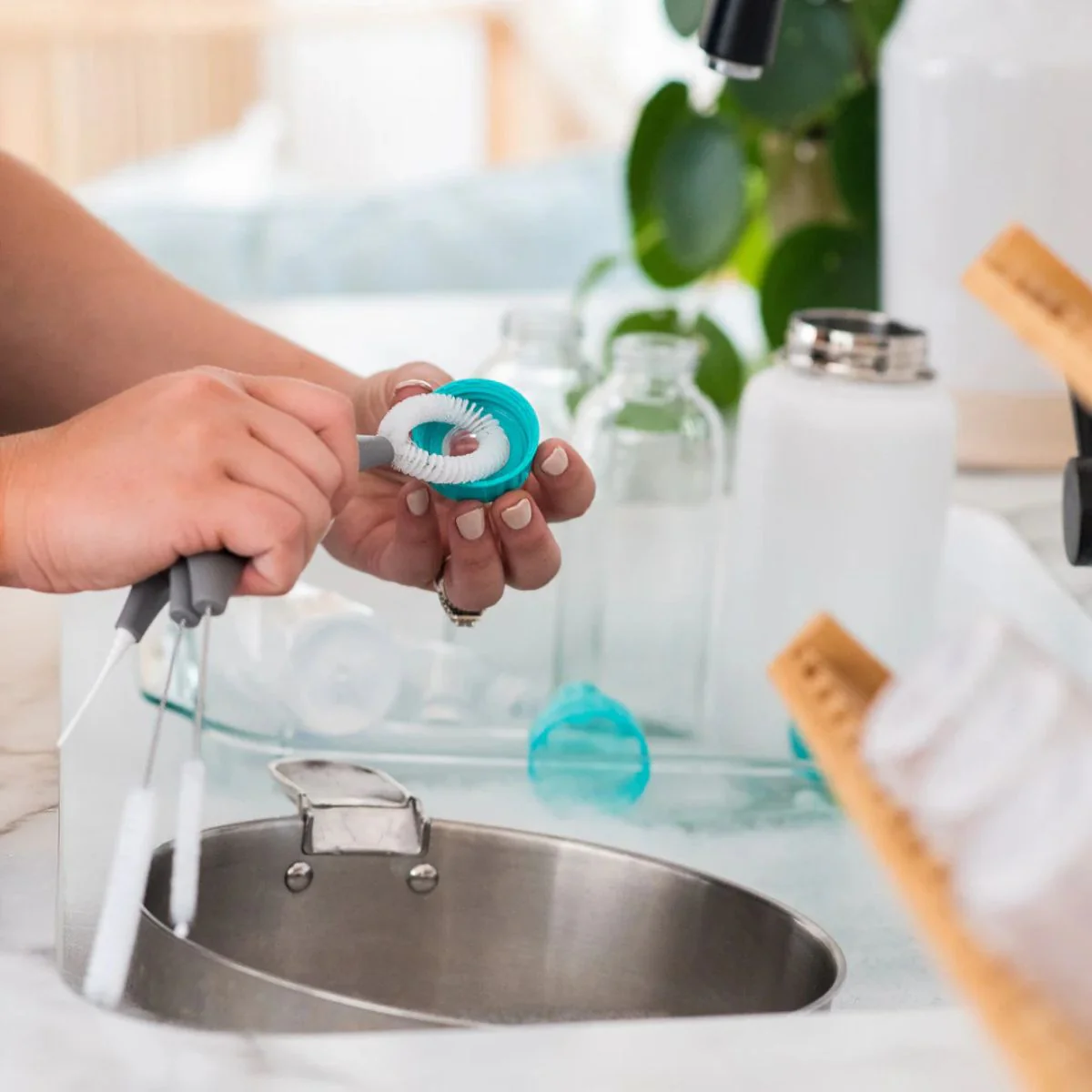 - Este set de cepillos nos encanta porque es la solución perfecta para limpiar aquello que nunca sabíamos cómo hacerlo como las pajitas de las botellas reutilizables o las ranuras de los tapones de las tazas take-away.