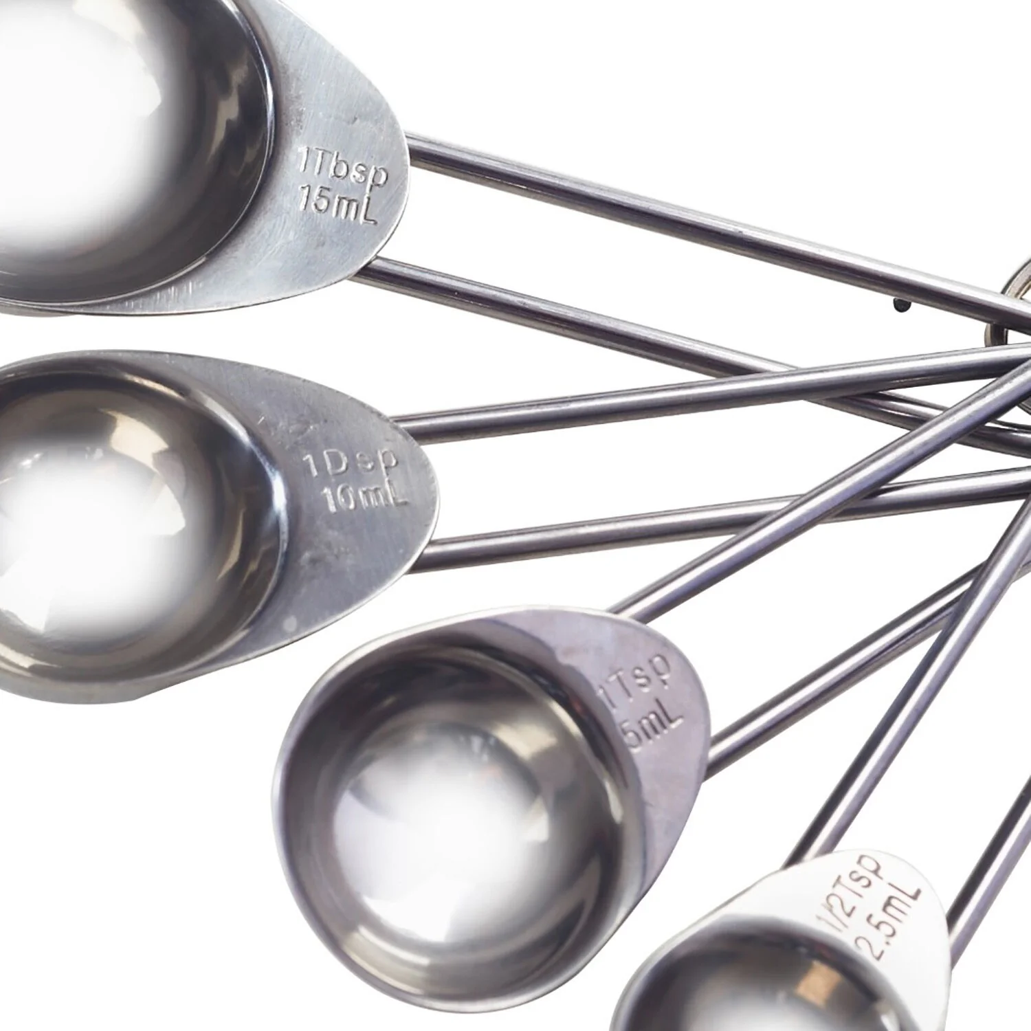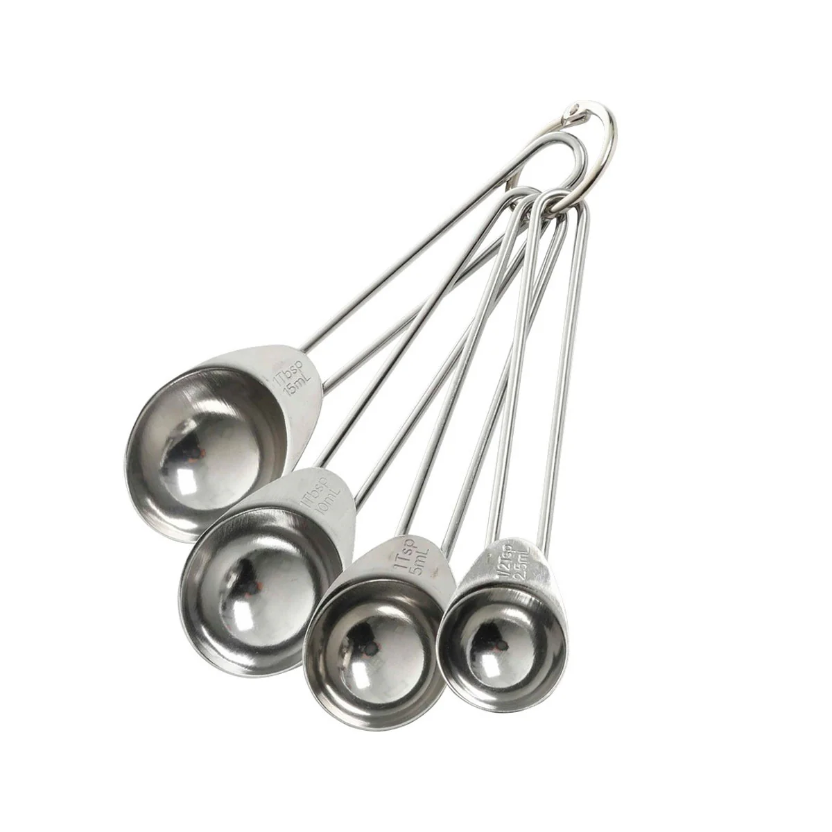 - Tamaños o capacidades de las cucharas: 15 ml, 5 ml, 2,5 ml y 1,25 ml.
