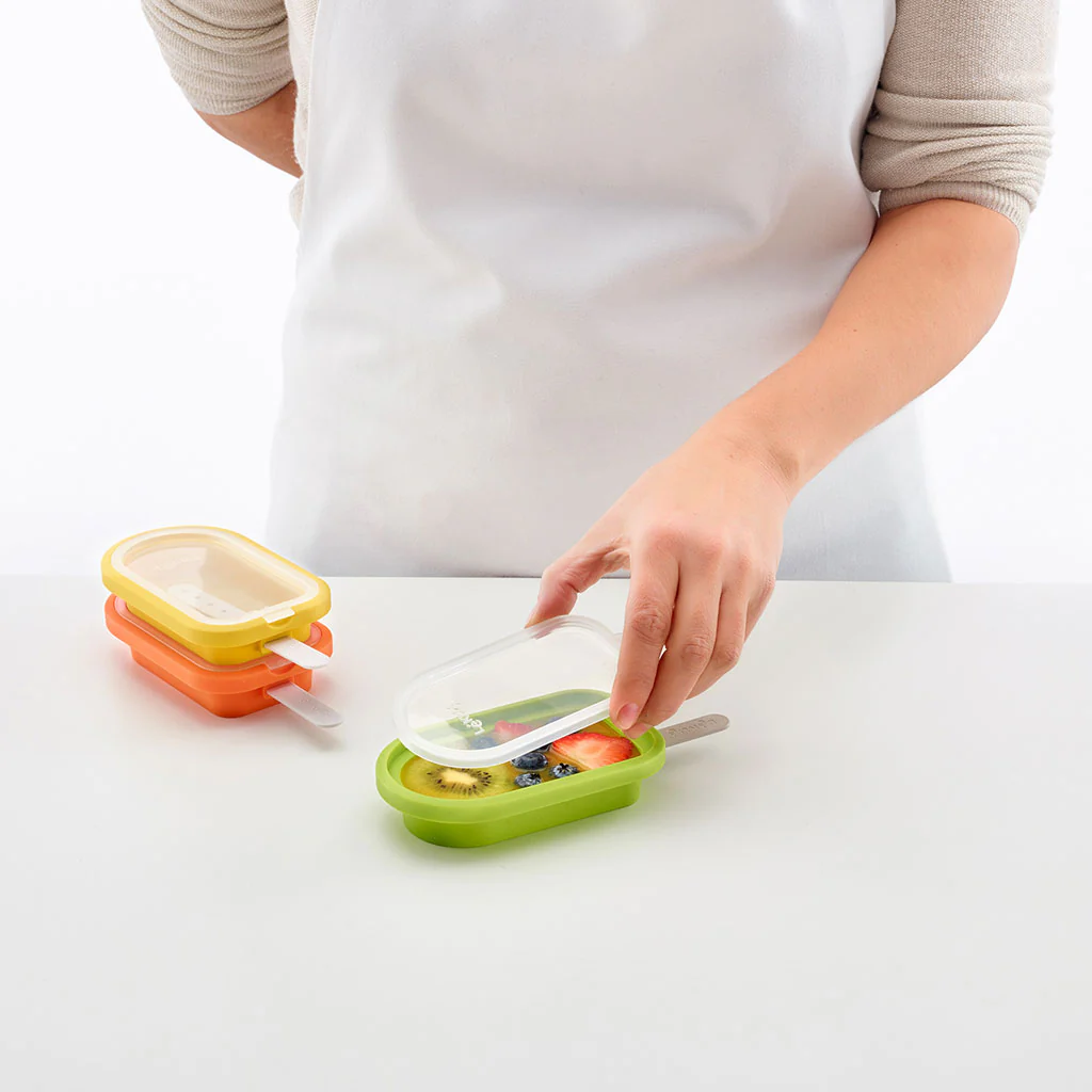 - Su diseño de rellenado en horizontal les da una mayor estabilidad, para que tanto la preparación como el momento de llevarlos al congelador sea más fácil y seguro. De esta forma, hasta los más peques de casa podrán hacer sus helados.
