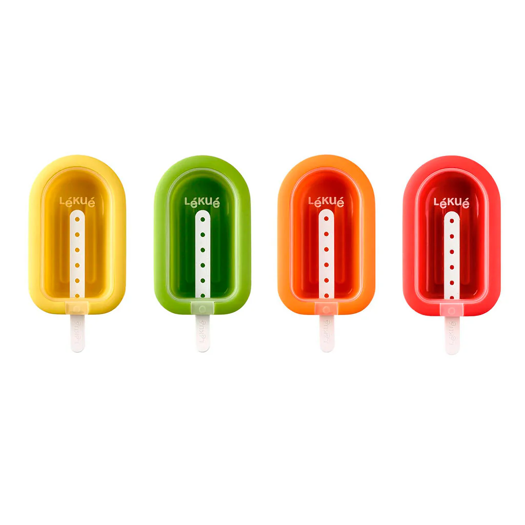 Los polos de siempre, ¡hechos en casa y a tu gusto! Con el Set de 4 helados clásicos de Lékué prepararás estupendos y saludables mantecados caseros con tus sabores favoritos. De frutas, chocolate o yogur, son tan fáciles de llenar como de desmoldar. Con este juego de 4 moldes individuales de silicona platino con tapa y palito reutilizable, ¡lo tendrás todo para refrescarte!
