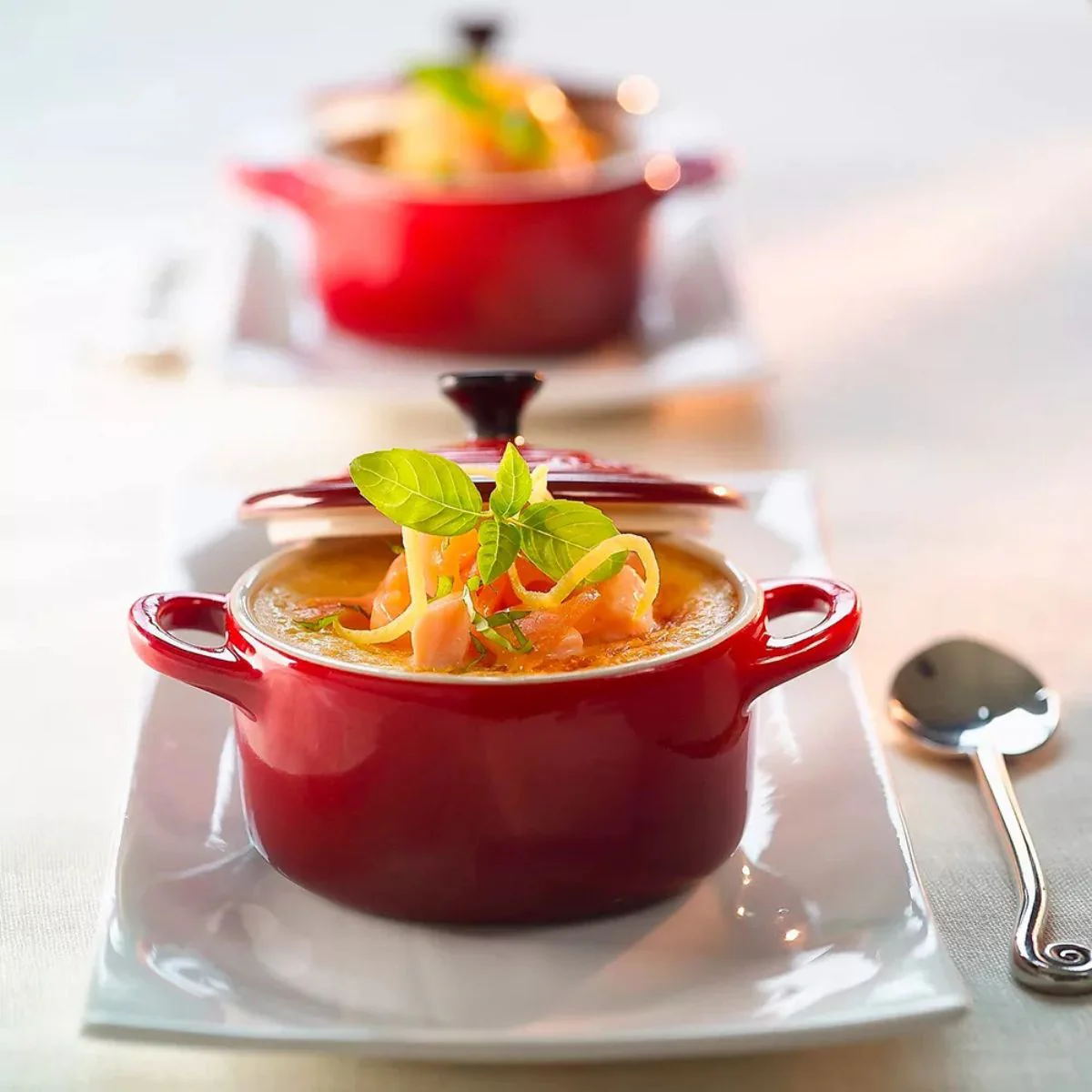 Las mini-cocottes céramicas Le Creuset son uno de los utensilios más populares de Le Creuset gracias a su original diseño y a su versatilidad. Son ideales tanto para una presentación original de platos, postres o aperitivos como para guardar especias o cualquier ingrediente en la cocina o presentarlo en la mesa.