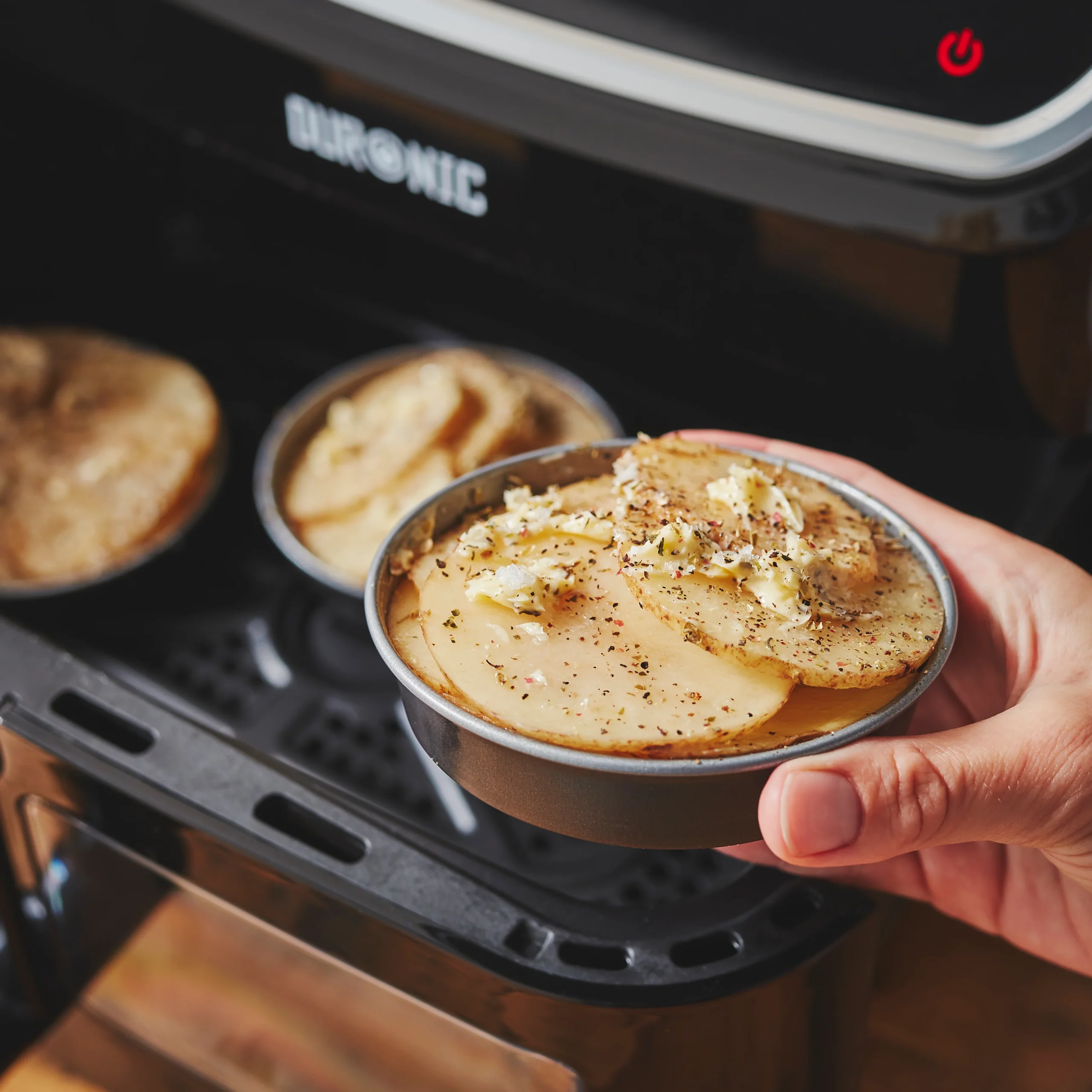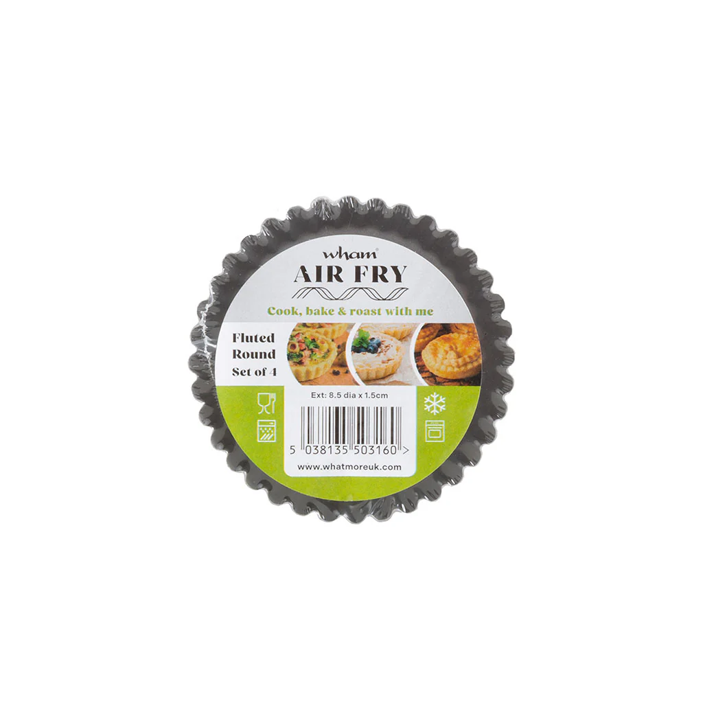 ¡Dale un giro delicioso a tus recetas con este Set de 4 moldes individuales tipo tartaletas para freidora de aire y horno Wham® Cook! Este práctico conjunto está diseñado especialmente para su uso en freidoras de aire u hornos, con los que podrás preparar con facilidad deliciosas recetas: desde tartaletas de hojaldre, pasteis de belém, mini flanes, mini pizzas o mini quiches en el horno, a mini lasañas, tartaletas individuales o mini pastelitos de carne en la freidora de aire ¡y mucho más!
