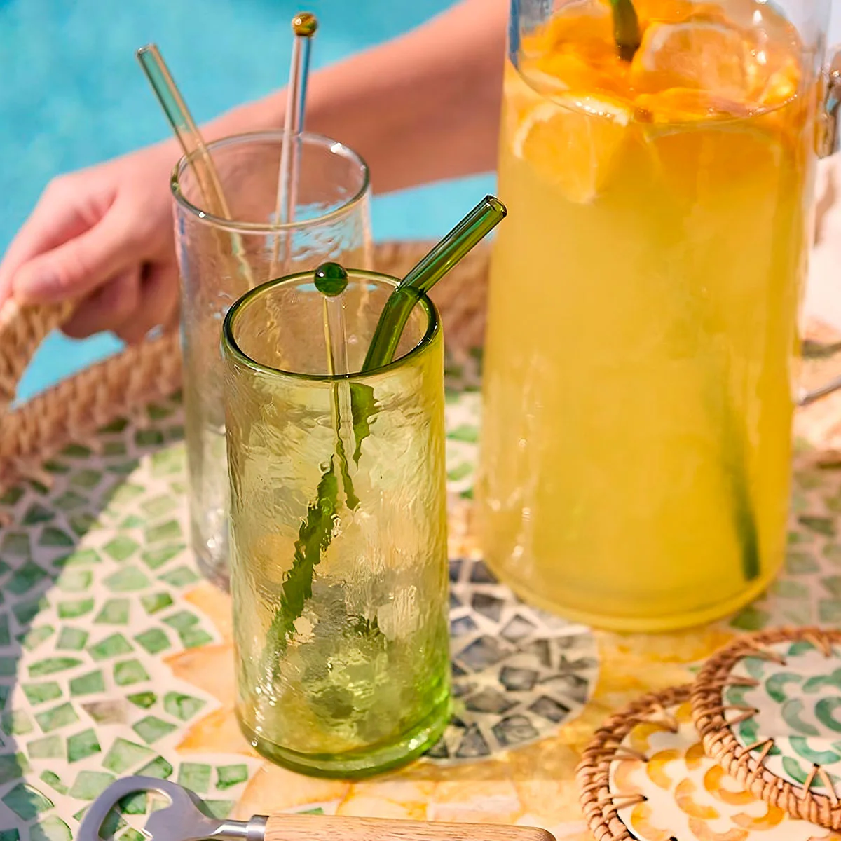 - Las pajitas son de cristal y están fabricadas a mano, de forma artesanal.