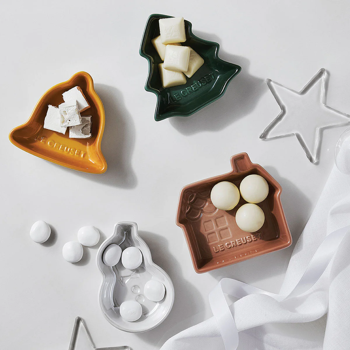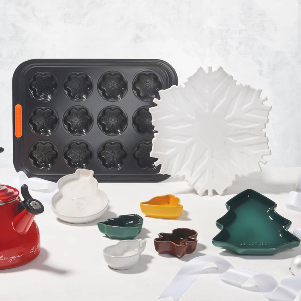 Con 4 formas especiales: una campana, un muñeco de nieve, un árbol navideño y una galleta de jengibre, esta edición especial de Le Creuset luce delicados motivos navideños en cada plato, evocando el encanto y la calidez de esta época tan mágica y especial. Cada pieza es diferente y juntas forman un conjunto perfecto para acompañar tus celebraciones y decorar la mesa con un toque festivo.