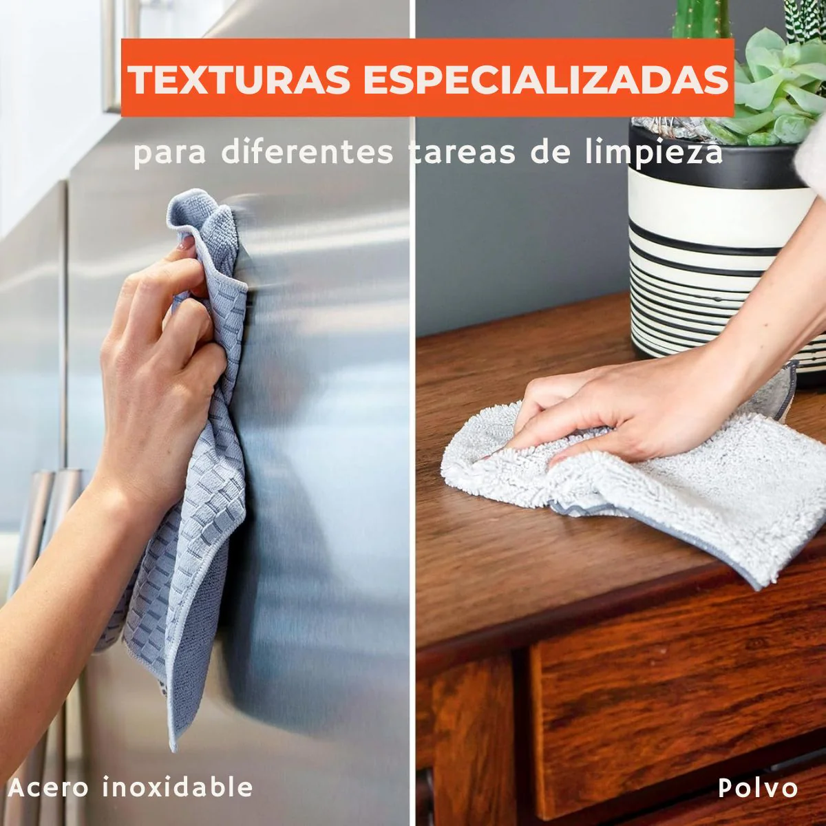 - Cada paño incluye una etiqueta que identifica cuál es su uso ideal.