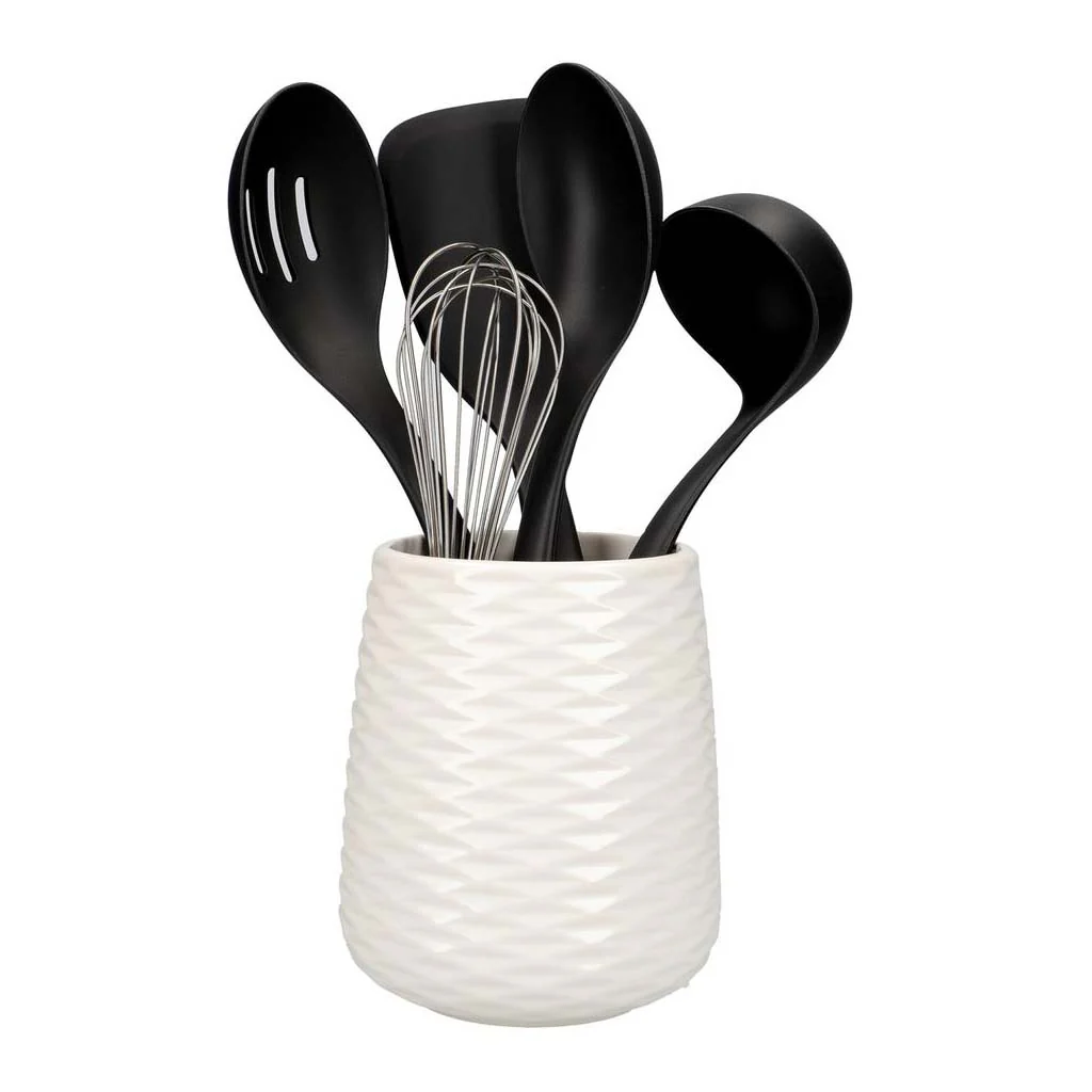 Las 5 piezas de este completo set son resistentes al calor y te permiten su uso sin miedo a dañar ninguna de las superficies en las que vayas a utilizarlos, incluidas las antiadherentes. El bote es ideal para tenerlas siempre recogidas y a mano, ¡listas para usar!