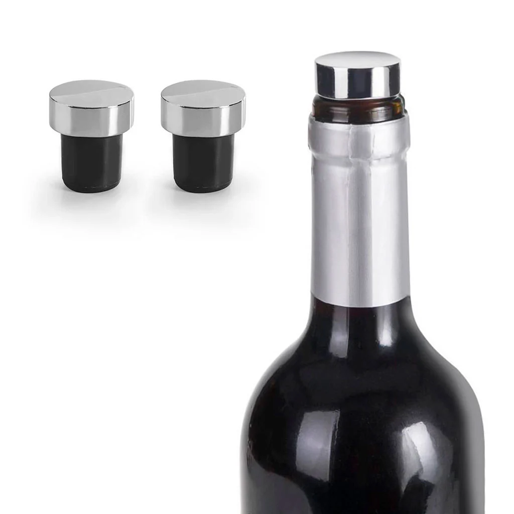 Son unos tapones en acero cromado y silicona, que hacen un sellado completo de las botellas de vino, con los que mantendrás en las mejores condiciones el vino, minimizando el contacto con el aire y preservando así el sabor de la bebida una vez abierta la botella.
