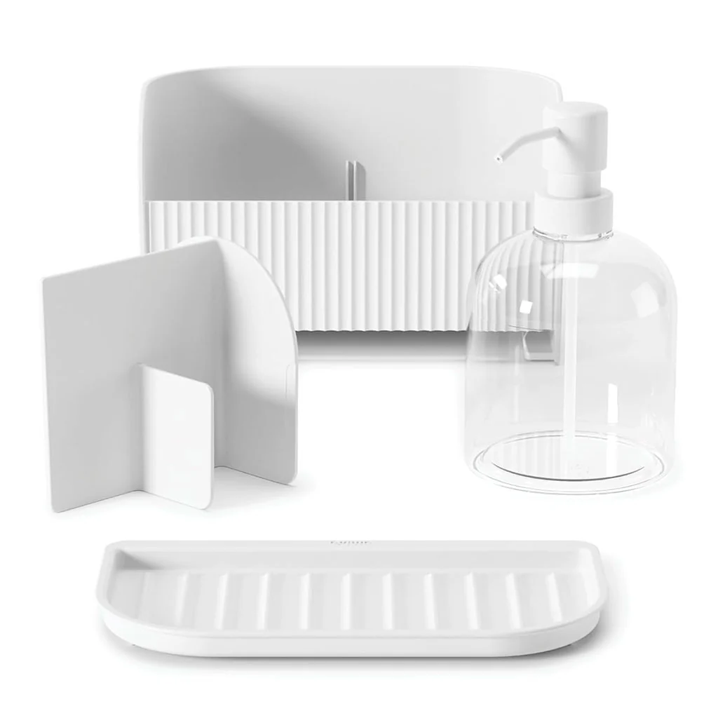 Práctico y funcional, el Set de jabonera con cajón Sling Umbra es la solución perfecta para mantener tu fregadero ordenado y totalmente limpio. Con un diseño compacto y un cajón desmontable de lo más práctico, este set te permite tener siempre a mano la esponja, el estropajo o el cepillo. En conjunto, se trata de un set que incluye cuatro elementos que harán que todo sea más cómodo en el momento de lavar tu vajilla: