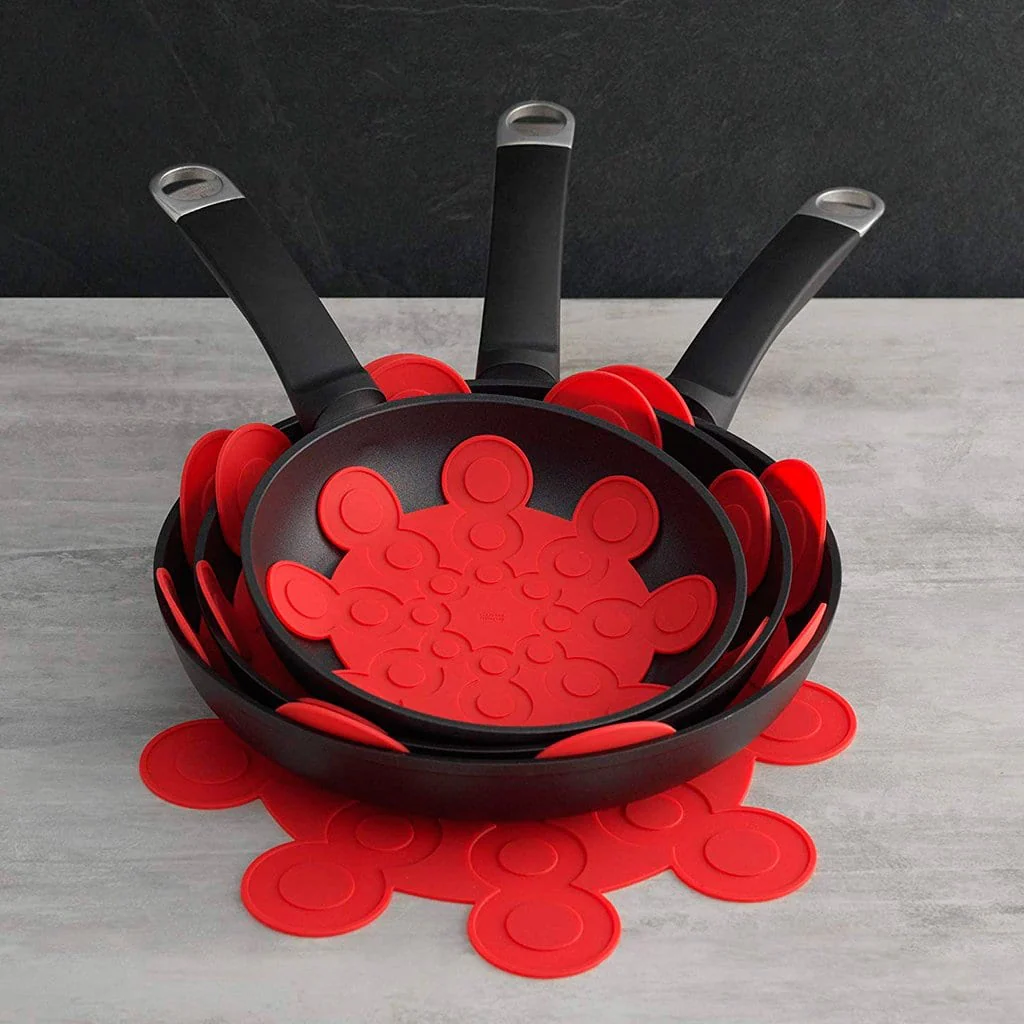 Este set de Kuhn Rikon no es solo un set de protectores de sartenes, es un set multiusos en toda regla: pensado para proteger tus sartenes, para usar de salvamanteles, como tapa antisalpicaduras en el fuego o en el microondas, como tapa protectora,… Un set pensado para acompañarte en tu día a día.
