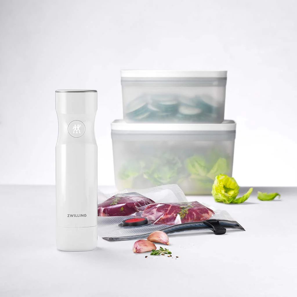 ¡Llega la forma más fácil de envasar al vacío! El nuevo y novedoso Set de vacío 7 piezas Fresh&Save de Zwilling es un conjunto perfecto para que puedas envasar al vacío tus alimentos de forma práctica y sencilla. Incluye la bomba de vacío Fresh&Save, 4 bolsas de conservación y 2 recipientes para que no te falte de nada. Es un sistema de envasado rápido, sencillo y sin cables. ¡No se puede pedir más!