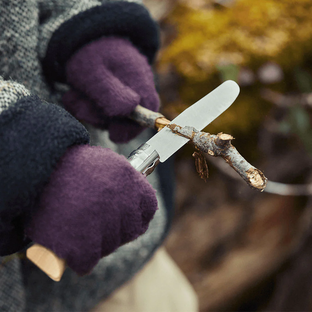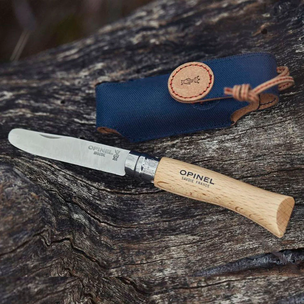 Con el set Mi primer Opinel aprenderán a usar la navaja de forma segura y natural. El conjunto de navaja y funda es perfecto también para que aprendan a cuidar sus herramientas y el filo de la navaja, a responsabilizarse de ellas, a tenerlas en buen estado y guardadas cuando no están en uso.