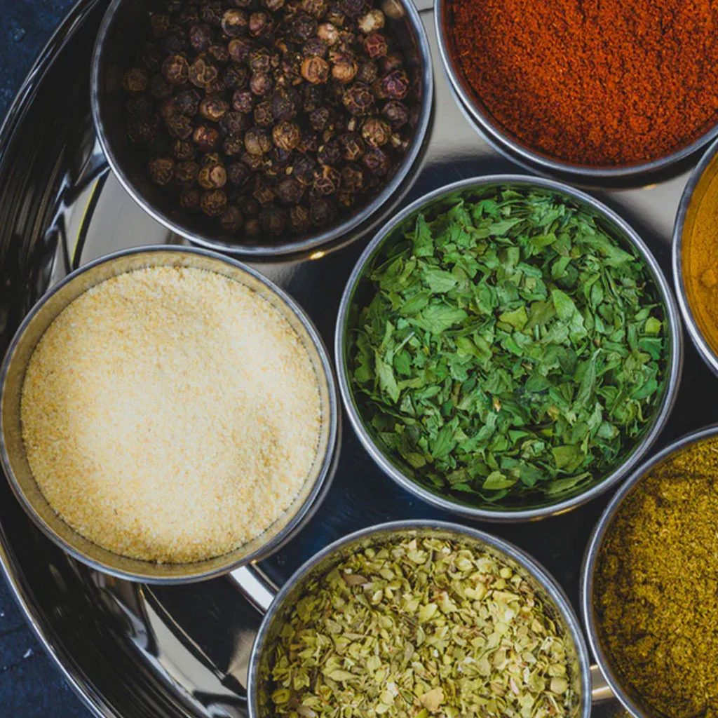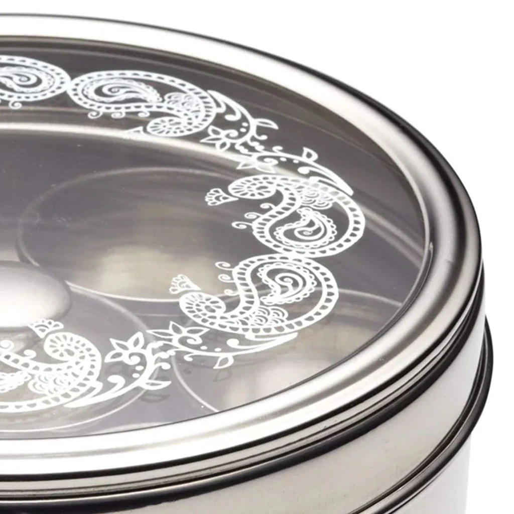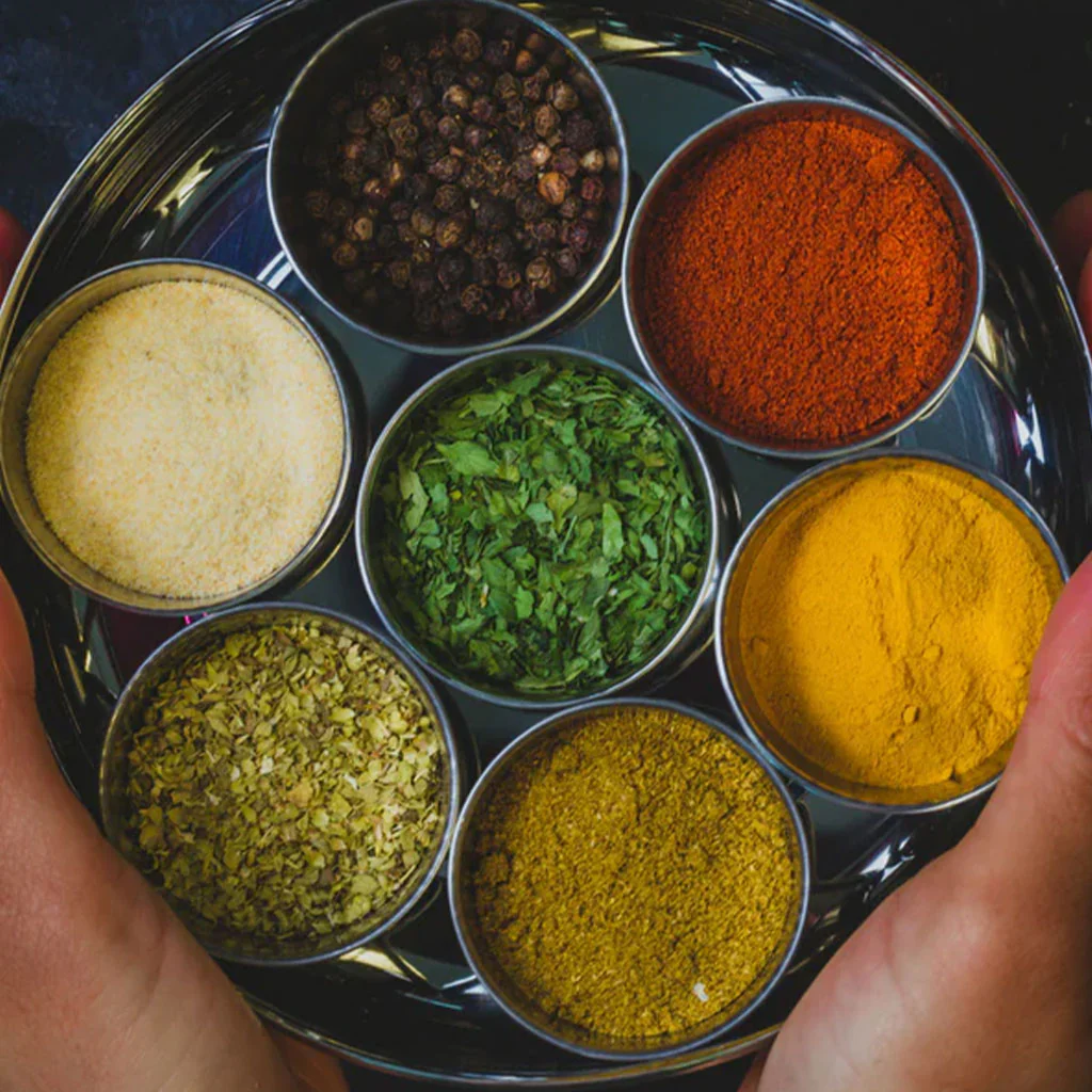 El set está fabricado en resistente acero inoxidable siguiendo el estilo tradicional de un dabba indio de doble tapa, y es una excelente forma de organizar las especias sueltas, manteniéndolas frescas, seguras y de fácil acceso. Además, el doble compartimento te asegura mantenerlas aisladas y que no haya mezcla de olores en la cocina, mientras te asegura un almacenamiento limpio y seguro.