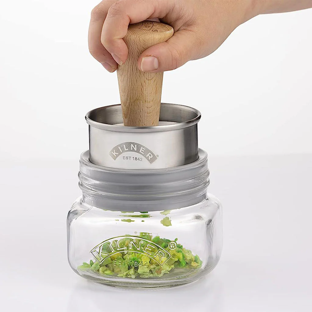 ¿Te apetece algo para dipear? Con el Set para guacamole y hummus de Kilner® podrás preparar en muy poco tiempo hummus, baba ghanoush o guacamole caseros, frescos y deliciosos. El conjunto dispone de un prensador y una base perforada para triturar tanto el aguacate como las frutas de la papilla de los peques de casa. ¡Un ayudante de lujo que no necesita enchufes!