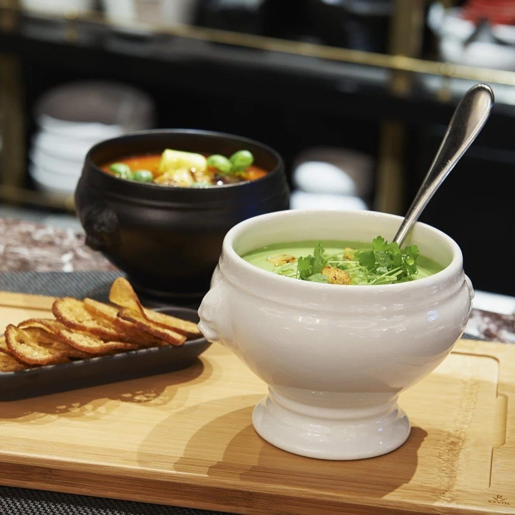 Las soperas con cabeza de león de Revol son tu aliado perfecto para servir todo tipo de sopas y cremas directamente a la mesa. ¡Te enamorarán a ti y a tus invitados!