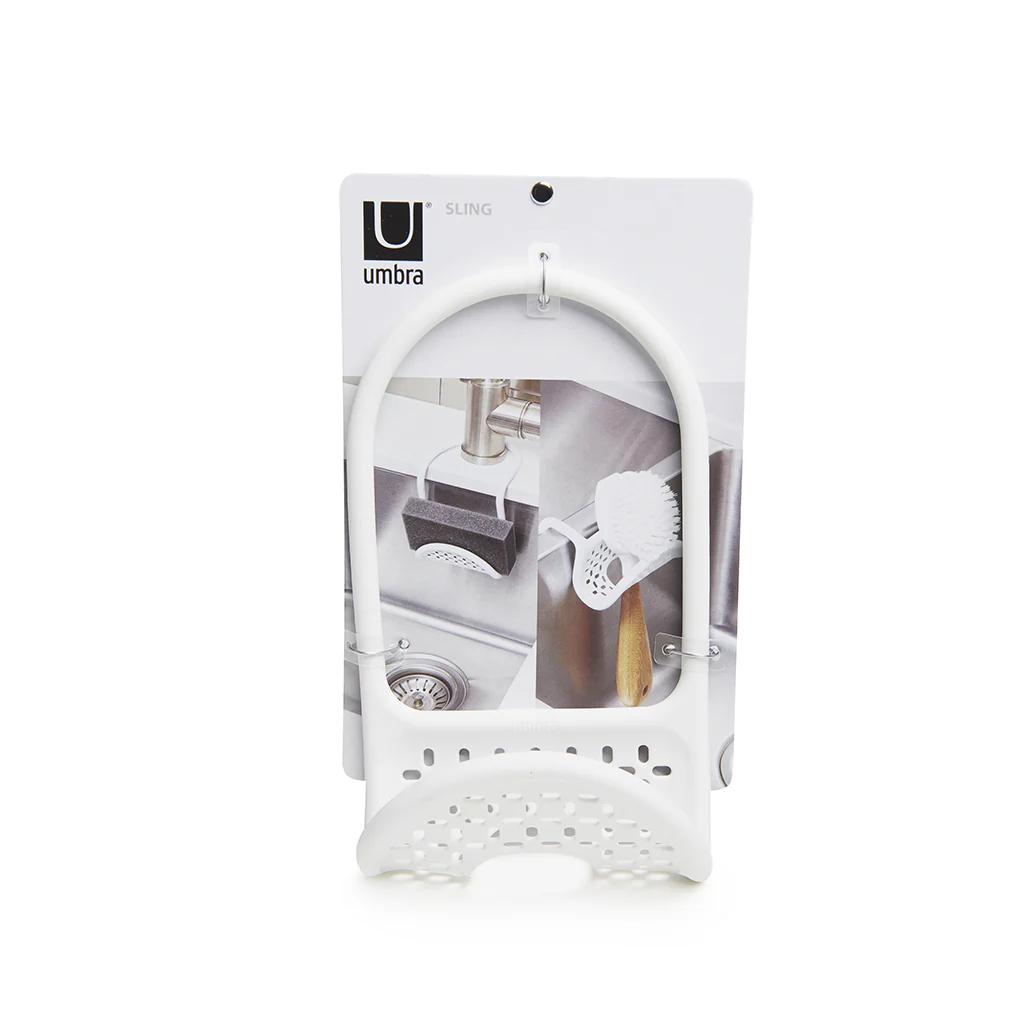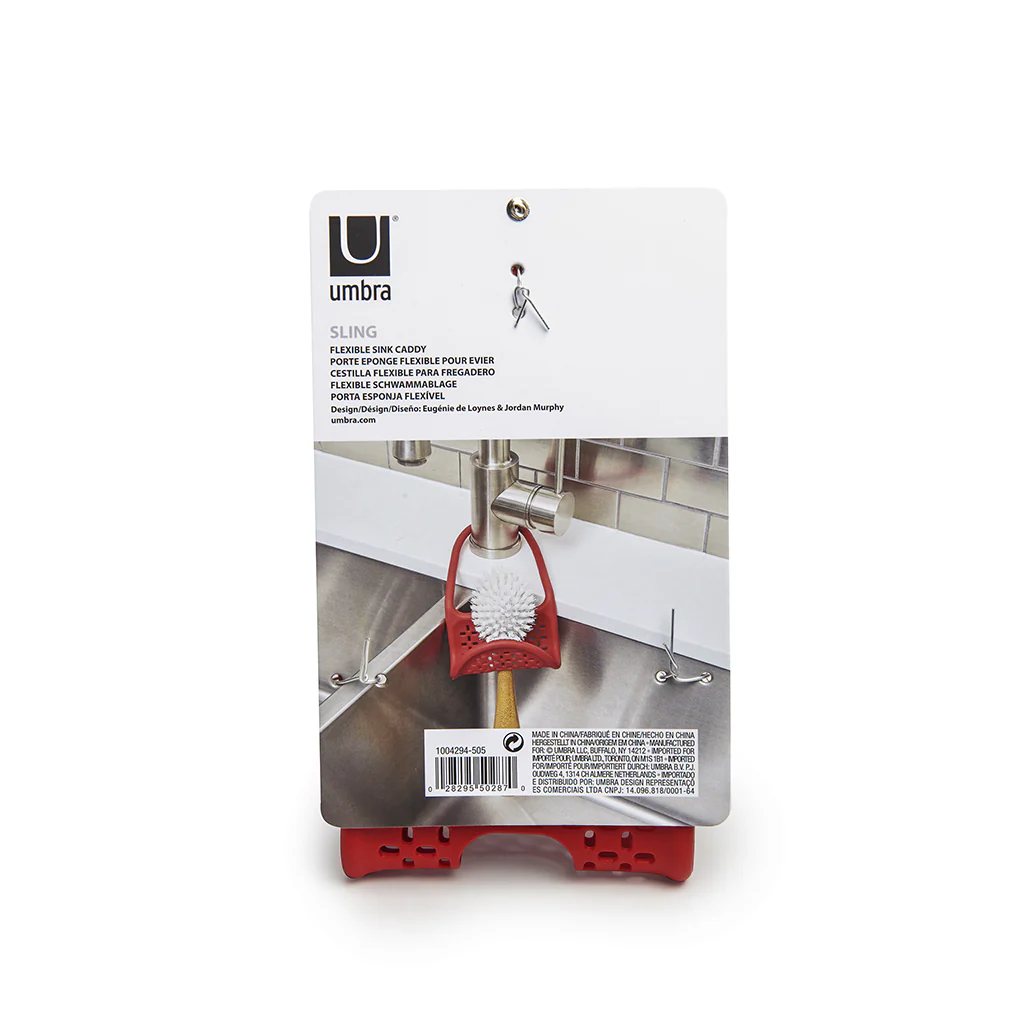 Con el Soporte flexible Sling de Umbra tus esponjas, estropajos y cepillos, van a estar siempre en su sitio. Este cestillo flexible de alambre con revestimiento plástico antideslizante, te permite darle la forma que quieras para colocarlo en el lugar de la pica que necesites, ajustándose con facilidad.