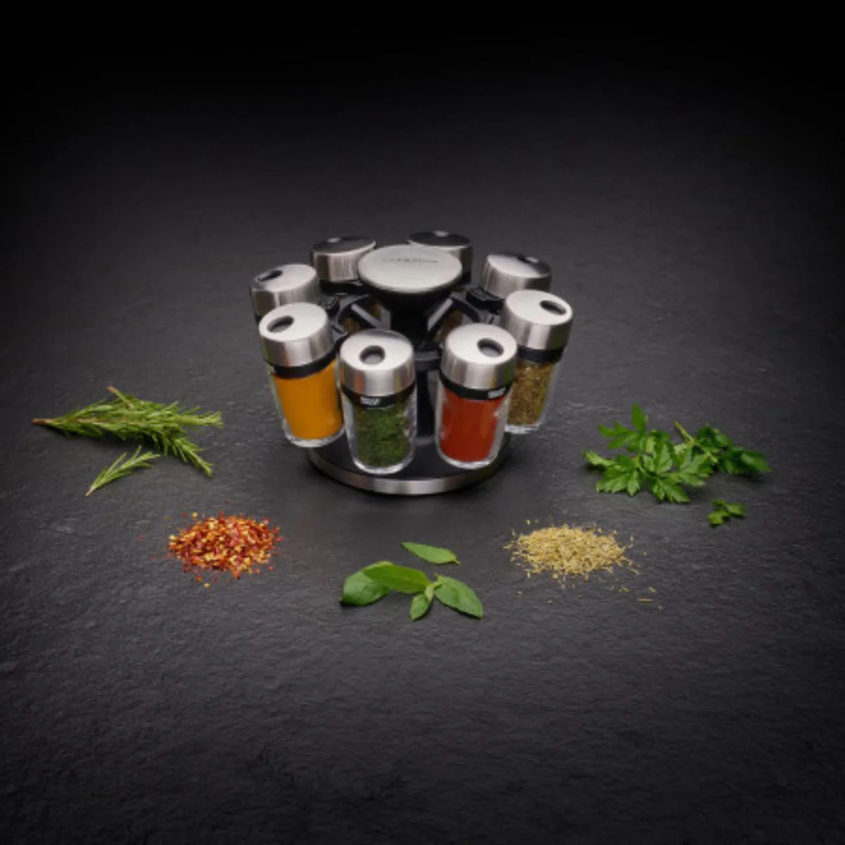 El Soporte para 8 recipientes para especias Cambridge Cole&Mason es la solución perfecta para mantener tus hierbas y especias organizadas de manera práctica en la cocina. Este accesorio combina un diseño moderno y cómodo que te permite acceder rápidamente a tus ingredientes favoritos y especiar tus platos mientras cocinas. ¡Vienen llenos! Sí, los frascos vienen con una selección de las mejores especias y, cuando lo requieras, podrás rellenarlos de nuevo superfácilmente!