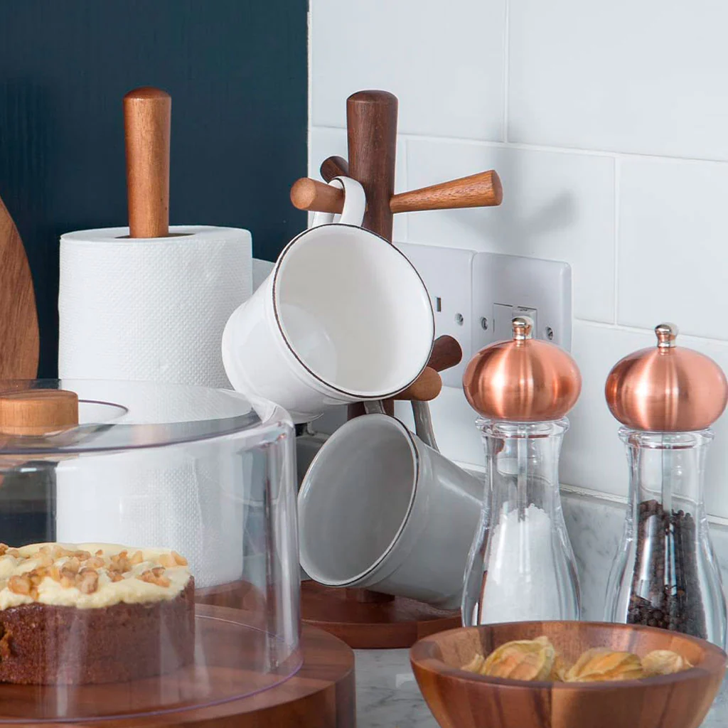 No puede faltar en la encimera un bonito soporte para papel de cocina. Este de T&G está fabricado en madera de acacia natural, con unas medidas de 31 cm de alto y 14 cm de ancho.