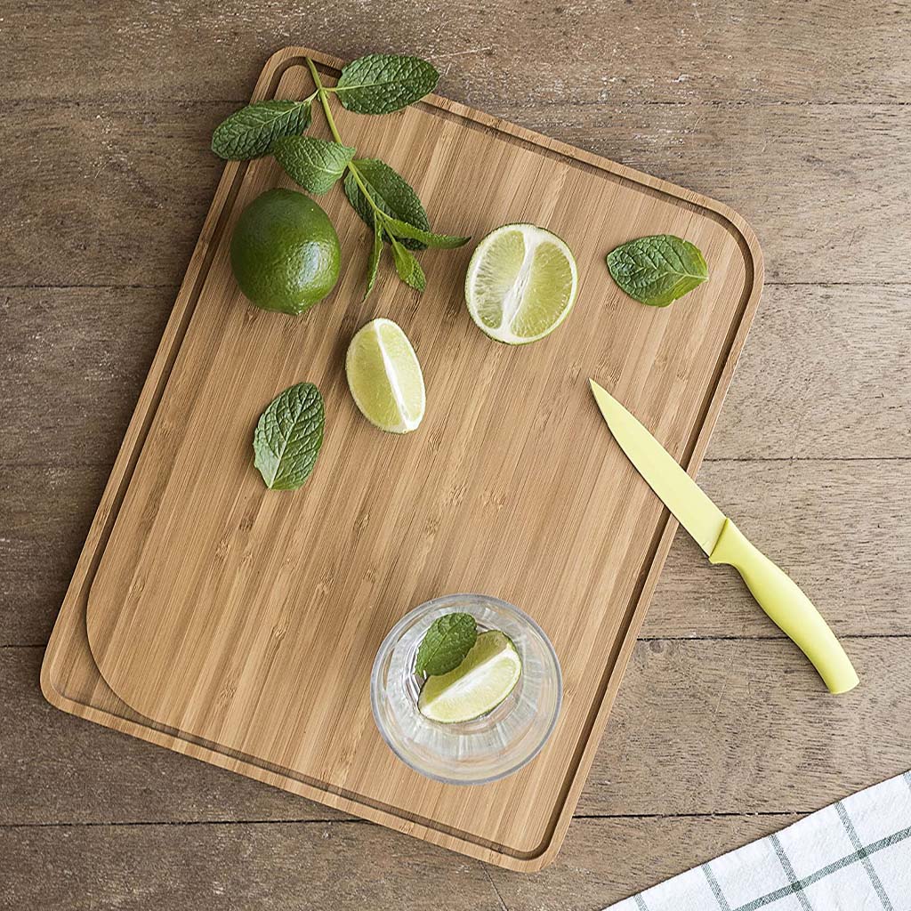 Esta tabla reversible y recogejugos será de gran ayuda para preparar tus recetas, ya que te permite cortar todos los ingredientes de forma rápida, segura y a salvo de las bacterias, ya que el bambú es resistente a la humedad, antibacteriano y no absorbe olores ni sabores.