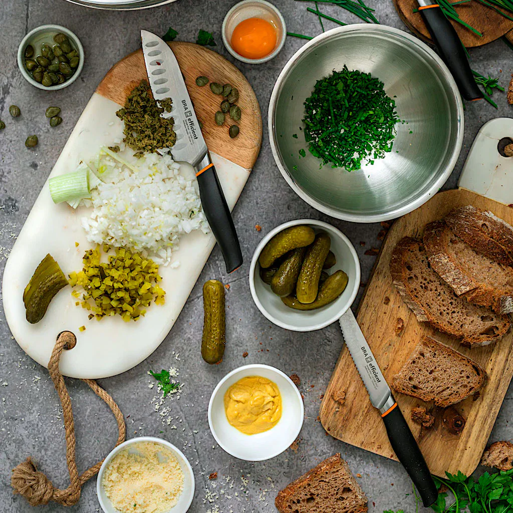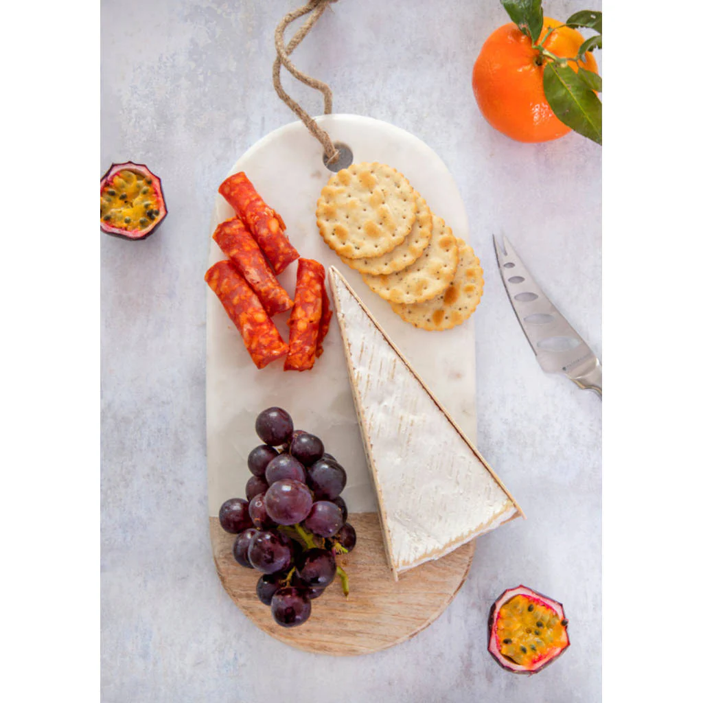 Si aprecias el refinamiento y el estilo en la presentación de alimentos, la tabla de mármol gris y madera de mango MasterClass de KitchenCraft es tu elección perfecta. Esta elegante tabla combina el mármol con la belleza de la madera de mango, creando un atractivo diseño que realza tus deliciosos platos. ¡Aperitivos, embutidos y postres quedan preciosos presentados en esta tabla!