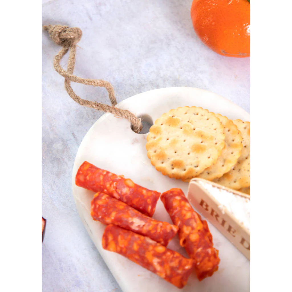 Con unas dimensiones de 16.5 x 33.5 x 1.5 cm, esta tabla es lo suficientemente grande como para servir porciones generosas de queso o canapés en tus cenas, además de ser un tamaño práctico para cortar y preparar ingredientes. Su superficie de mármol naturalmente fresca es ideal para servir quesos y otros alimentos que requieren mantener una temperatura constante. También es perfecta para la preparación de masa, ya que el mármol ayuda a mantenerla fría y lograr un acabado crujiente.
