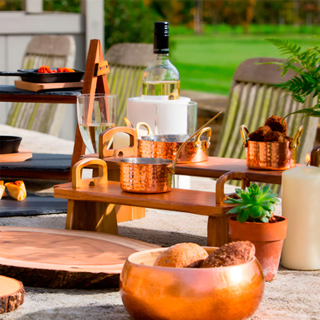 Con la tabla estante de madera de acacia de Artesà, puedes dar un toque de calidez y estilo a tus presentaciones. Su diseño elevado no solo permite destacar tus aperitivos, tapas o postres, sino que también es una solución práctica para ganar espacio en la mesa. Ideal para buffets o cenas familiares, esta tabla convierte cualquier momento en una ocasión especial. Fabricada en madera de acacia acabada a mano, ofrece una superficie natural y resistente, apta para todo tipo de alimentos.