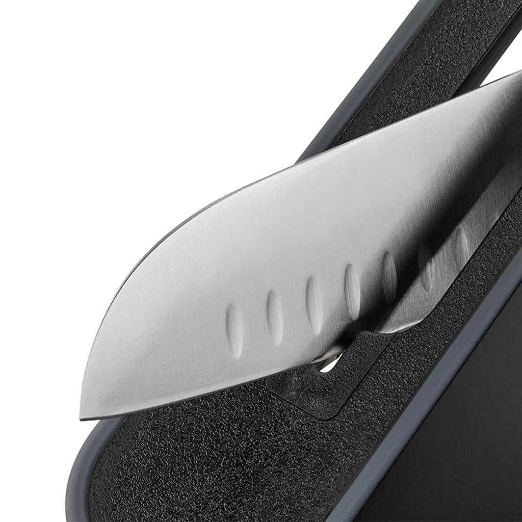 - El mango dispone de una piedra afiladora de cerámica integrada, para que puedas tener siempre tus cuchillos a punto, listos para usar y para cortar sin problemas.