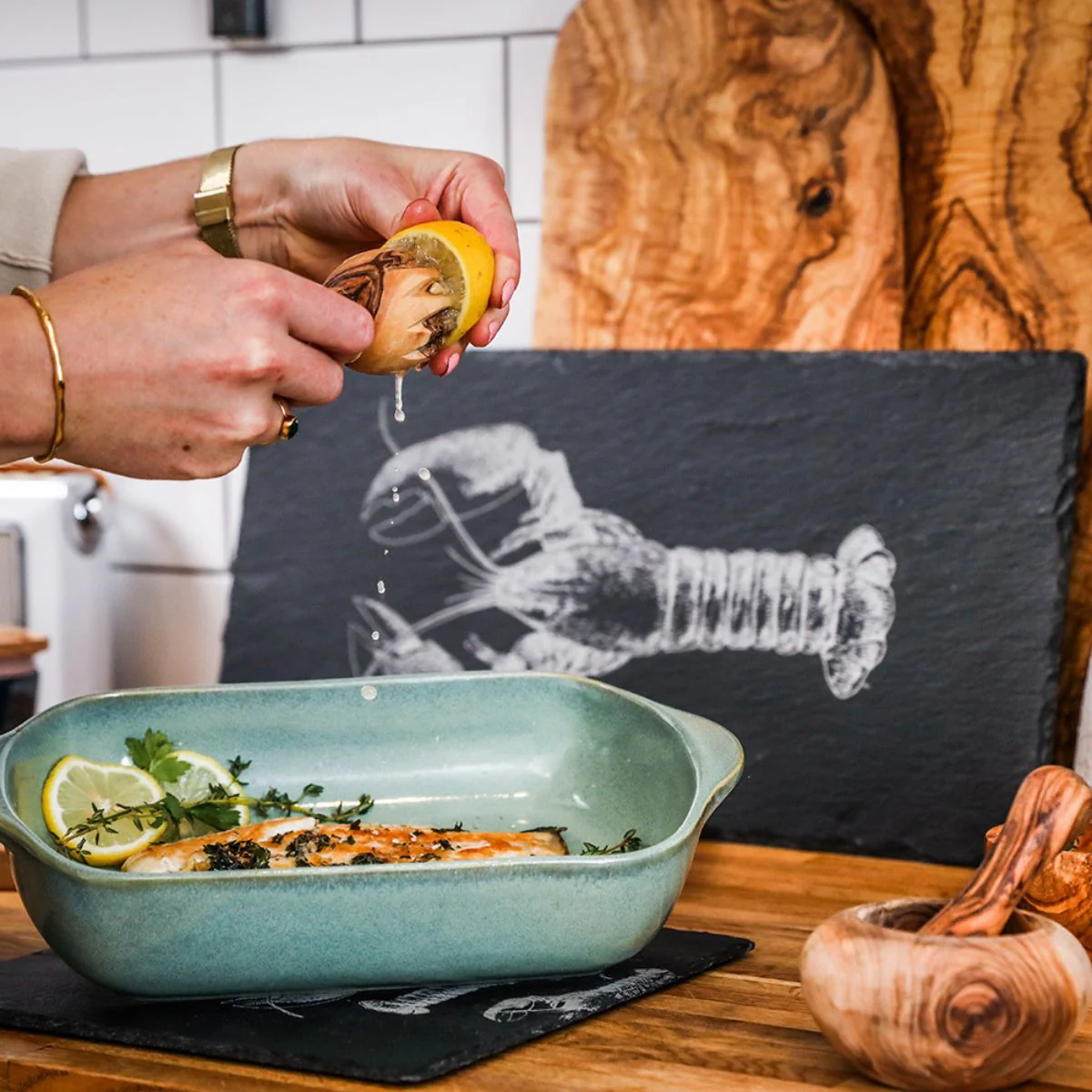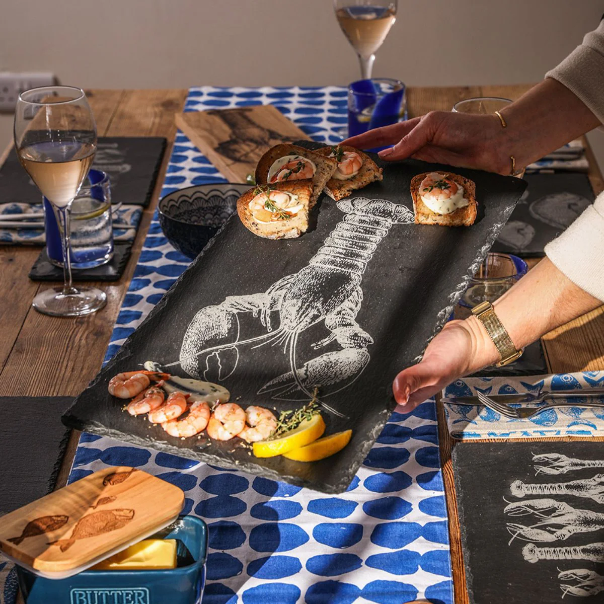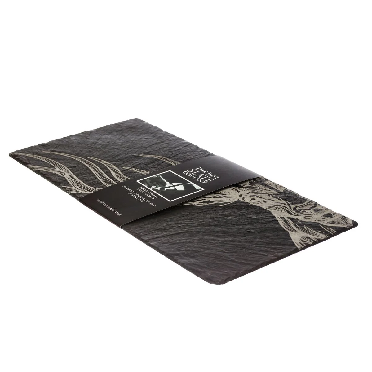 Hecha a mano en Escocia, la Tabla rectangular grande de pizarra Selbrae es un precioso y amplio plato de pizarra natural, que lucirá como ninguno en la mesa. Como ves, el diseño de la tabla cuenta con el encantador grabado de una imagen ilustrada a mano. Cada tabla es una pieza artesanal, única e irrepetible, ideal como bandeja para llevar a la mesa y presentar tanto aperitivos, como entrantes fríos o calientes. Una tabla preciosa, original, única y de gran calidad.