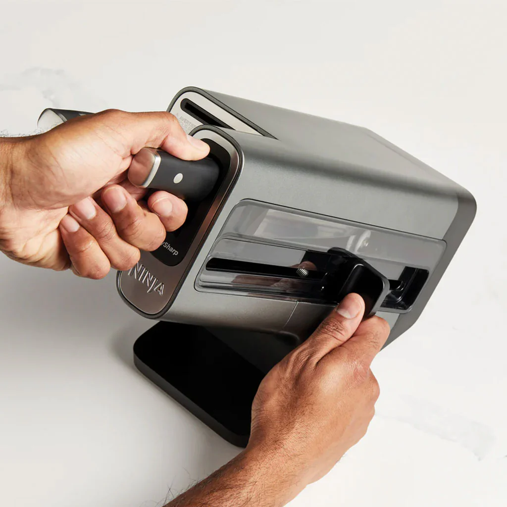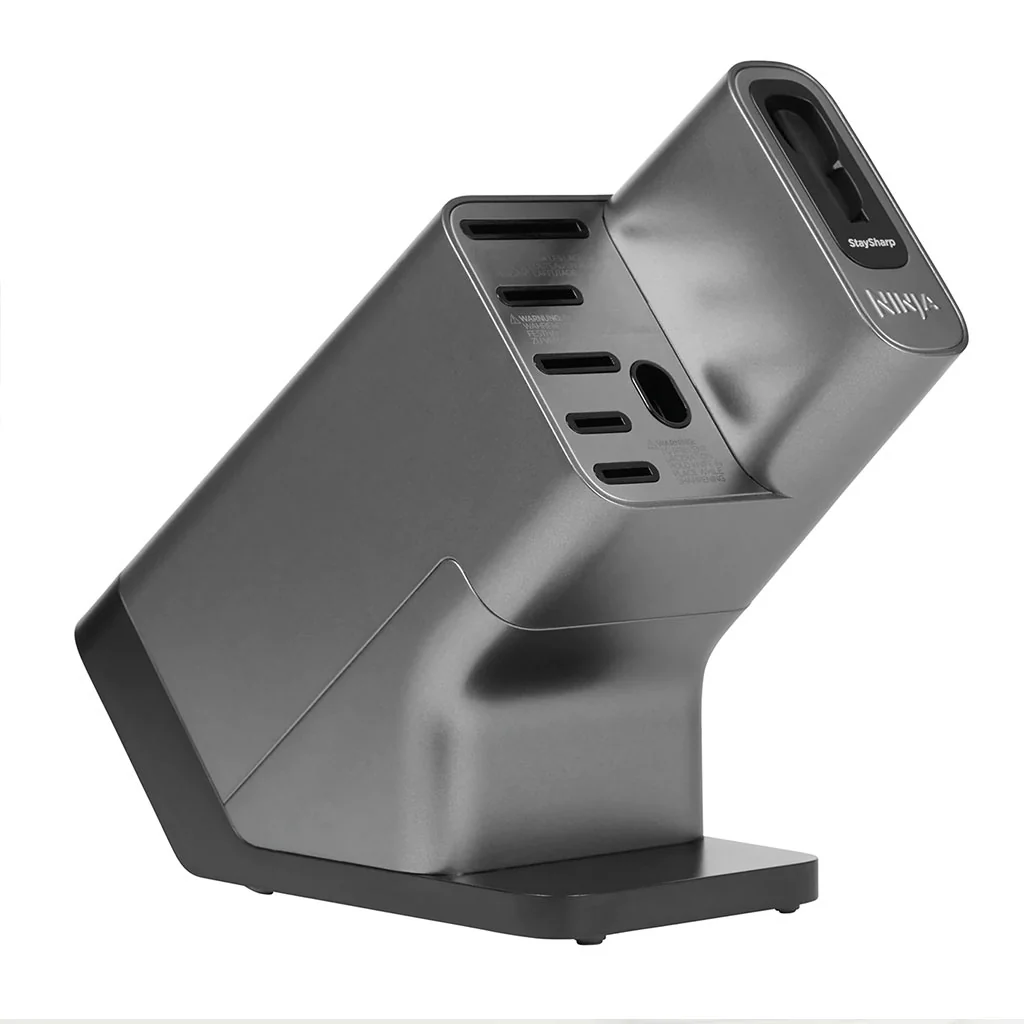 NOTA: El afilador integrado StaySharp está diseñado únicamente para cuchillos de filo recto Ninja®. No deben afilarse los cuchillos dentados o de sierra, ni las tijeras de cocina. Tampoco deben afilarse los cuchillos de otras marcas, ya que podrían dañarse y dañar el afilador.