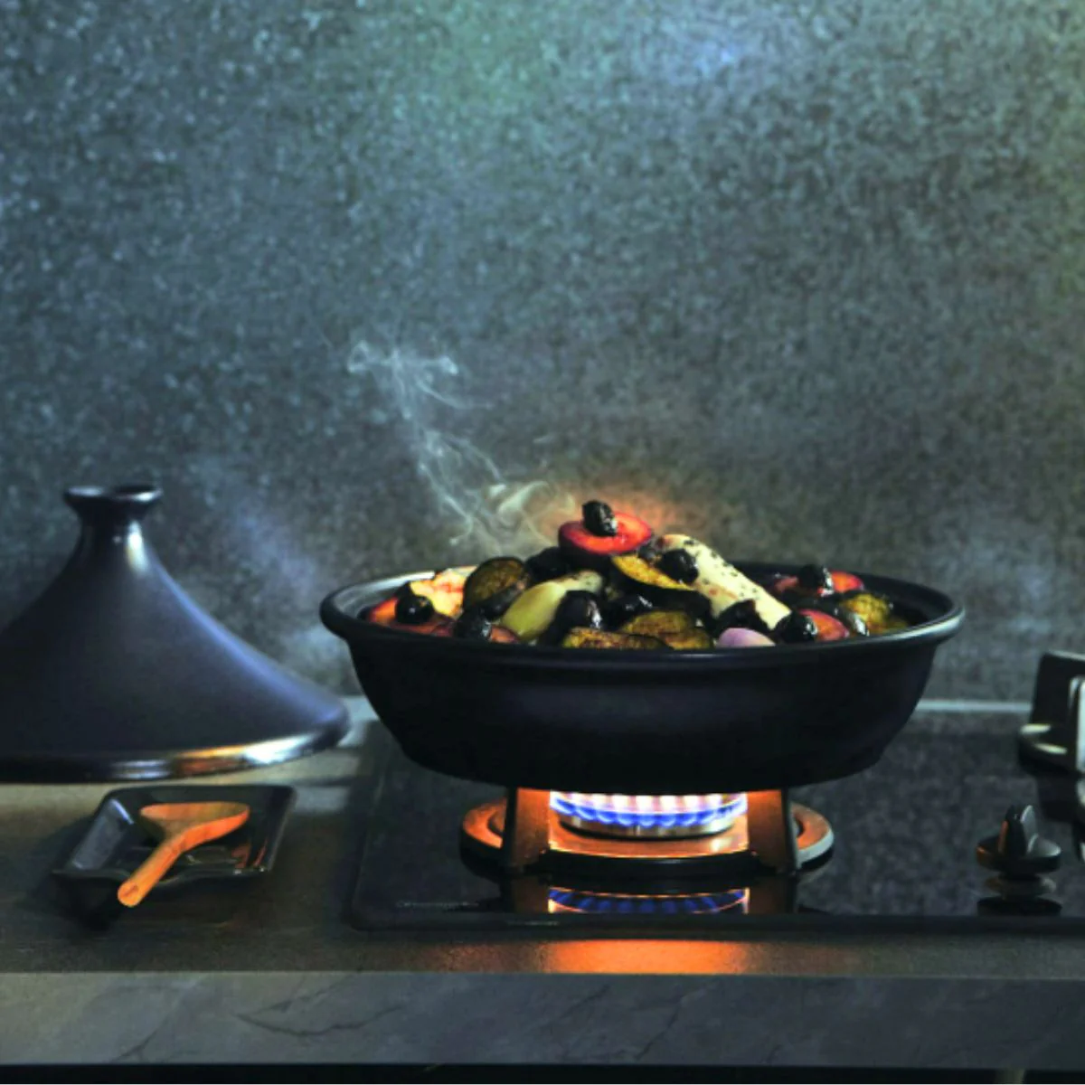 - Acompañamientos y bases: verduras especiadas para servir con couscous, arroz con frutos secos y cebolla caramelizada, o incluso usar el tajine para mantener caliente un guiso y presentarlo en mesa.