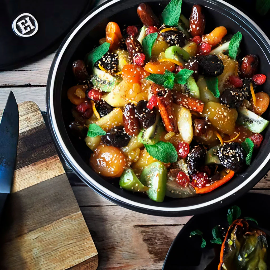 - También puedes utilizar tu tajine para otras recetas a fuego lento, como estofados o guisos al vapor, o puedes usarlo sin tapa para calentar o asar en el horno.