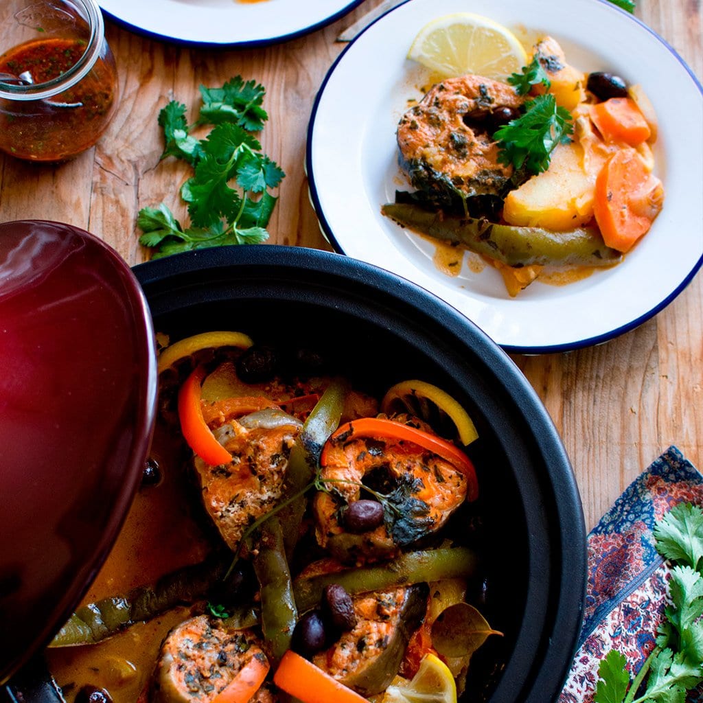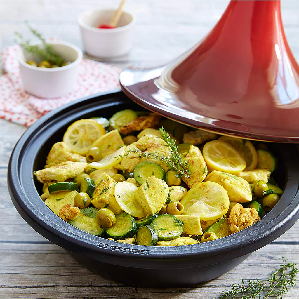 La tajine Le Creuset, con base de hierro y tapa cerámica, es ideal para una lenta cocción de platos ricos y aromáticos. Y, además, la bandeja, al ser de hierro, se puede utilizar para muchos otros usos, igual que las cocottes o las sartenes de hierro de Le Creuset.