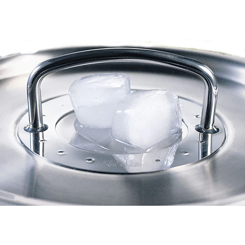 - Esta tapa cuenta con función de condensación y cierre hermético. Encaja a la perfección en la sartén, evitando la pérdida de calor. Su diseño acampanado y ligeramente cóncavo en el centro, permite que el vapor interior que llega a la tapa gotee sobre los alimentos, proporcionando unos acabados más jugosos y tiernos. La concavidad del centro de la tapa está pensada para colocar cubitos de hielo y conseguir acelerar y aumentar la condensación del vapor, para conseguir una mayor jugosidad, sabor y aroma.