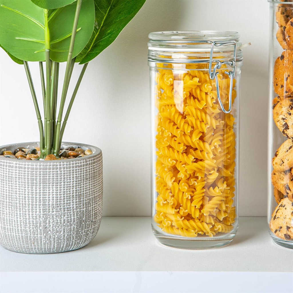 Estos tarros altos de cristal son un todo un clásico de Bormioli. Son perfectos para alimentos secos, aunque también podrás usarlos para almacenar alimentos frescos, para preparar tus fermentados y para tus conservas, ya que son aptos para la pasteurización y garantizan un cierre hermético gracias a su sistema de clip y a la junta de silicona. Además, gracias a su forma cilíndrica son ideales para congelar caldos, salsas, purés o legumbres cocidas.