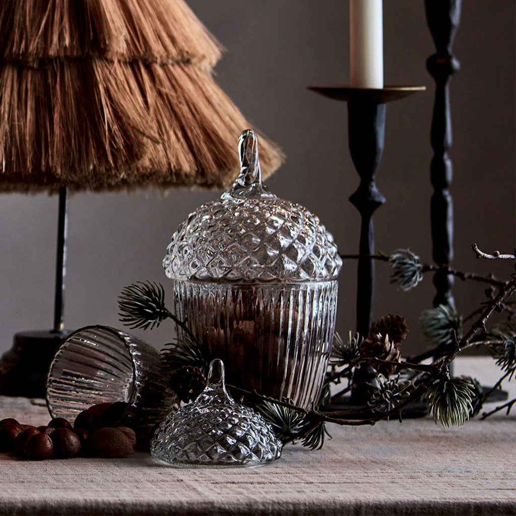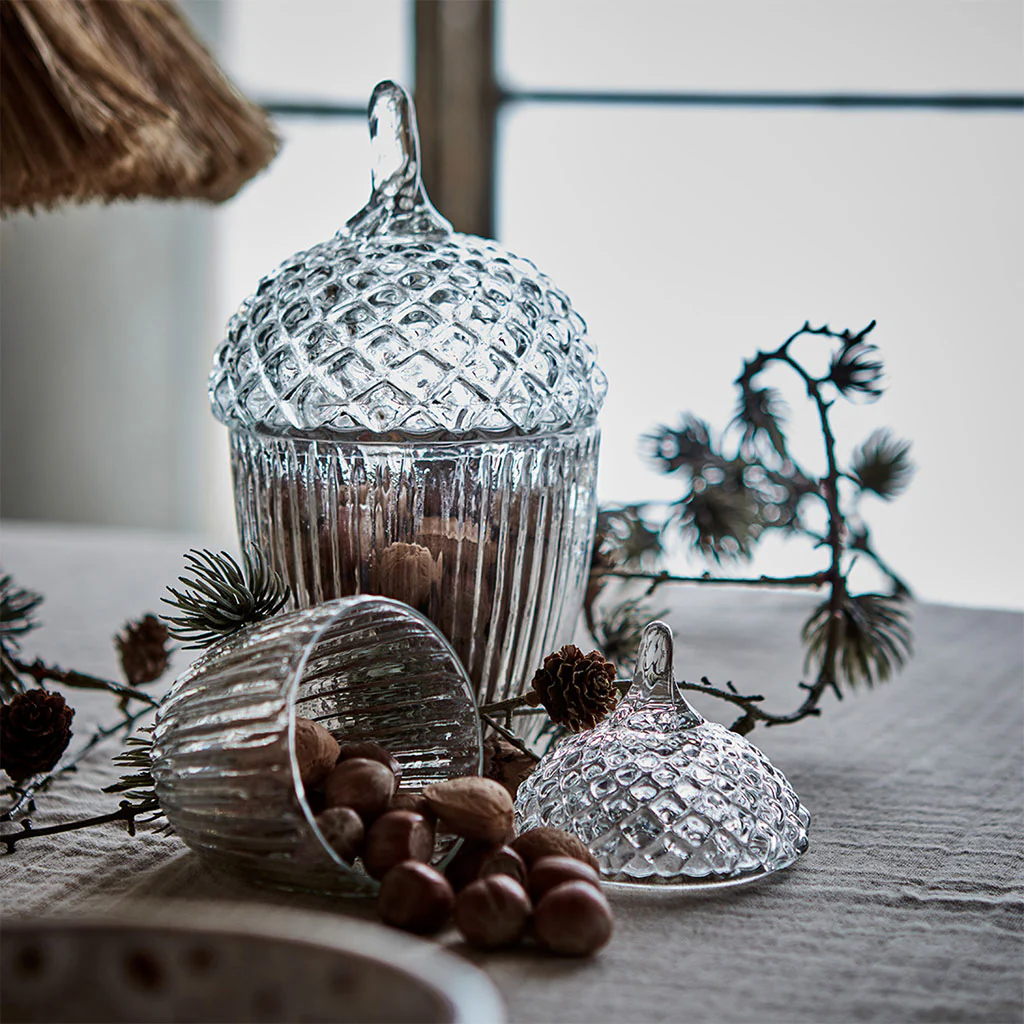 Con la encantadora forma de una bellota, el Tarro de cristal Romance de Affari of Sweden es una pieza de lo más original. Este tarro con tapa es perfecto como bombonera sobre el mueble del salón, como bote para las galletas, los dulces o las mini magdalenas en la mesa de centro, o para las bolas de algodón en tu mesilla de noche. Un tarro tan precioso como versátil, que lucirá allí donde lo tengas.