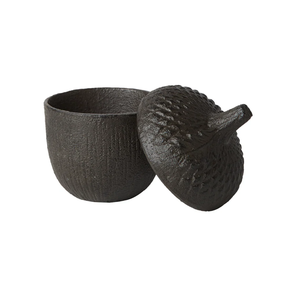 El bote Frej es un bote con tapa precioso, realizado en hierro forjado en forma de bellota, con tanta personalidad como encanto. Lo encuentras disponible en dos tamaños, y ya sean juntos o combinados, llaman la atención en donde sea que los pongas, la encimera, la mesa o en la estantería.