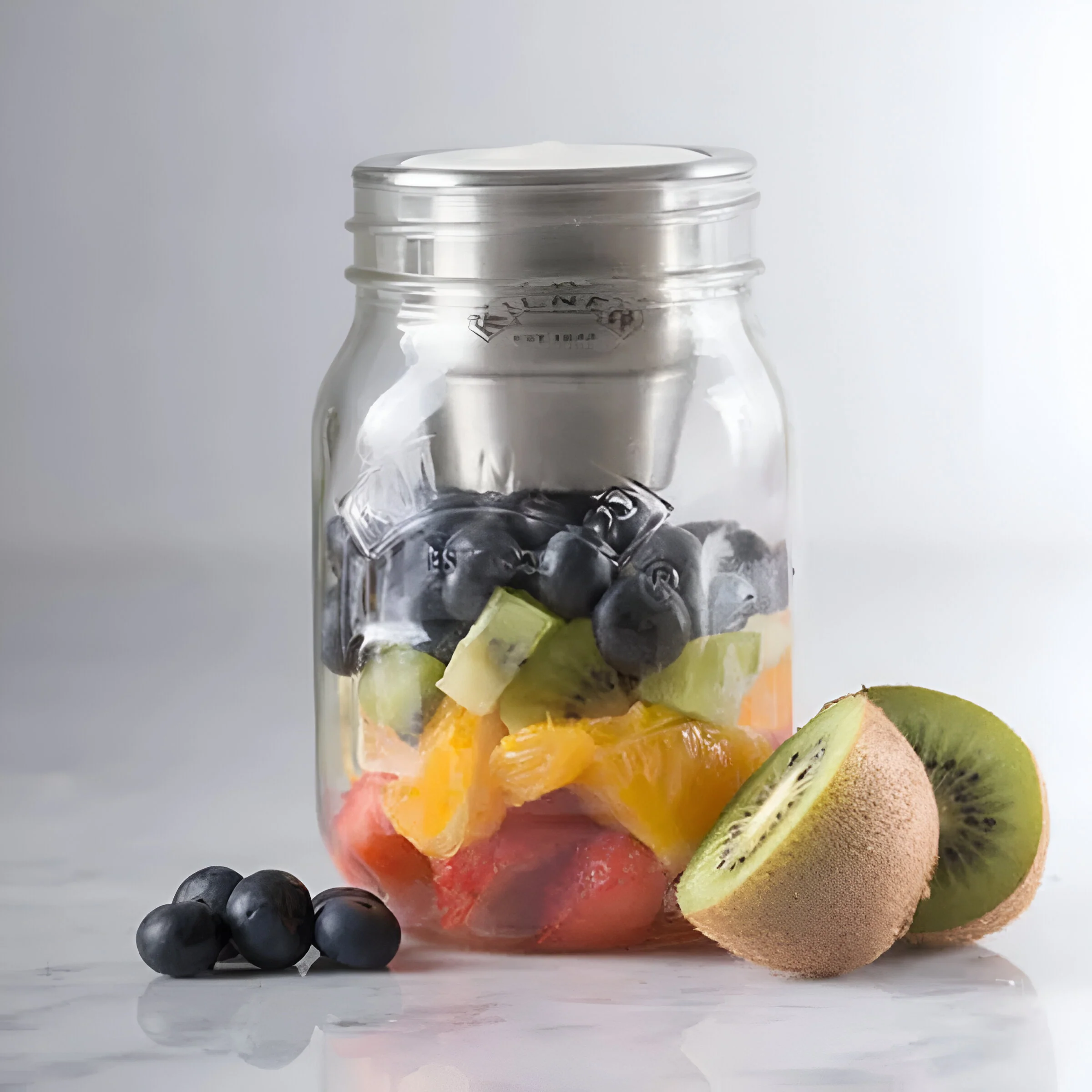 - Tarro de vidrio con contenedor de acero inoxidable.